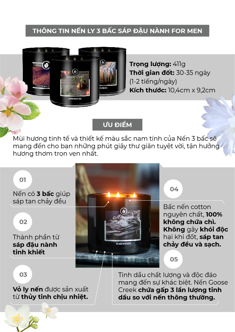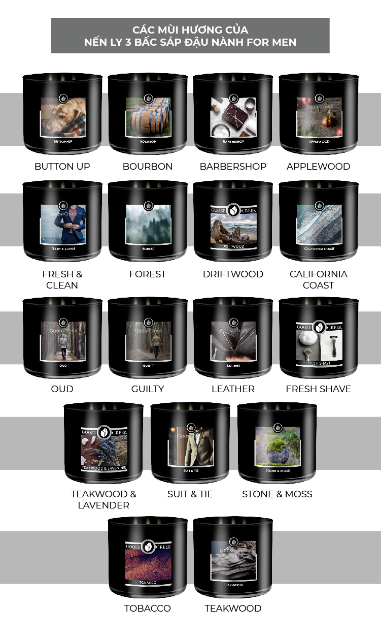 ✨Nến ly 3 bấc sáp đậu nành For Men Goose Creek (411g) - Teakwood
