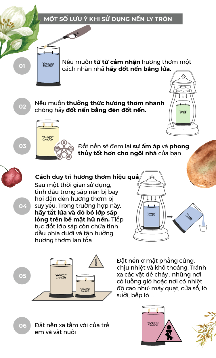 - Trọng lượng: 115g, thời gian cháy 40-60 giờ liên tục. - Hương thơm tinh dầu thiên nhiên, an toàn cho sức khỏe, và môi trường đáp ứng tiêu chuẩn nghiêm ngặt của Châu Âu.