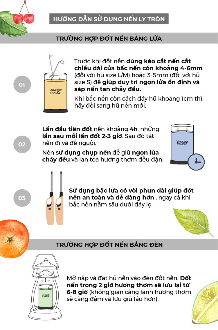 THÔNG TIN SẢN PHẨM Mã dòng sản phẩm: NQM0147 Sử dụng nguyên liệu hoàn toàn nhập khẩu: paraffin tinh chế (fully refined paraffin wax) nhập khẩu từ Malaysia, bột màu và tim nến từ Đức,