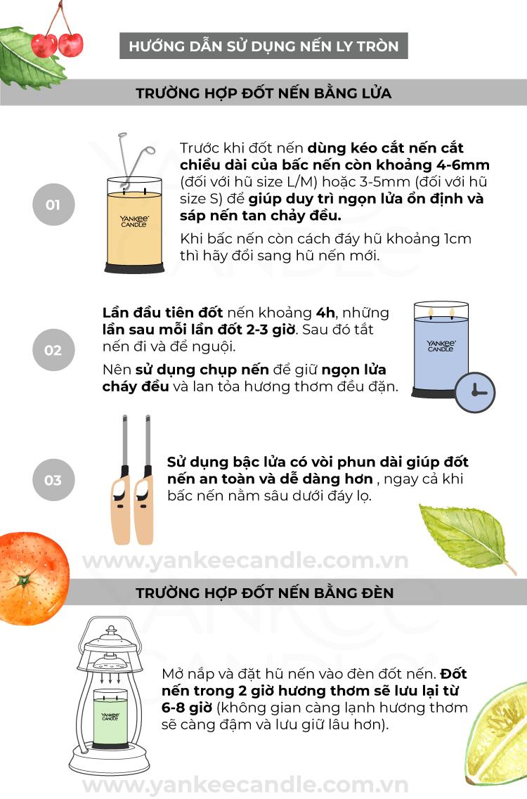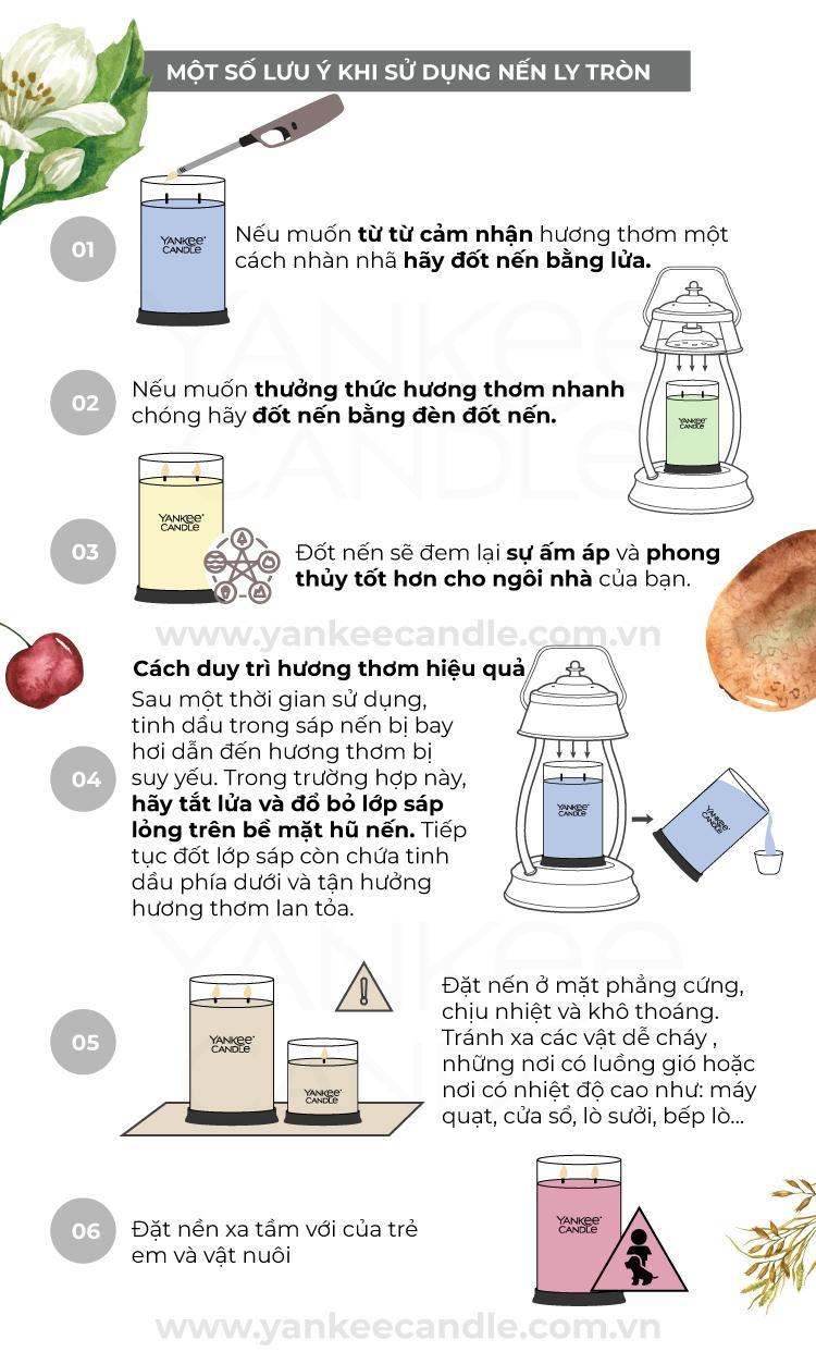 Kích thước (D x R x C cm): 8 x 8 x 10.5 Thời gian cháy: 35 giờ Được làm bằng sáp cao cấp và an toàn Ánh sáng dịu nhẹ, lãng mạn, hương thơm