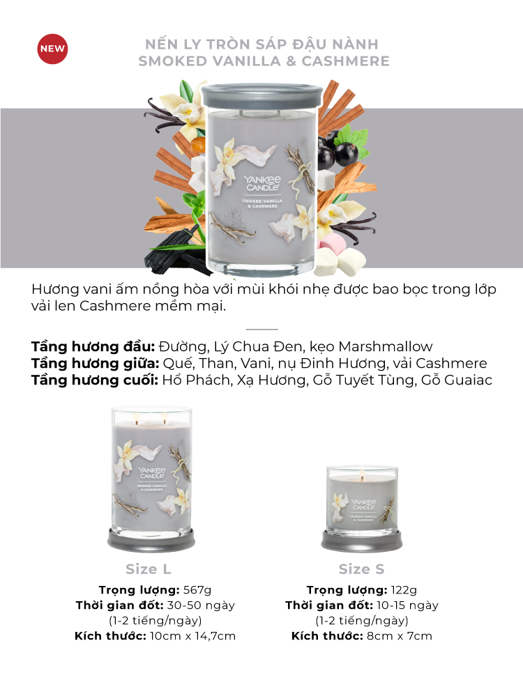 ✨Nến ly tròn sáp đậu nành Yankee Candle size L (567g) - Smoked Vanilla & Cashmere