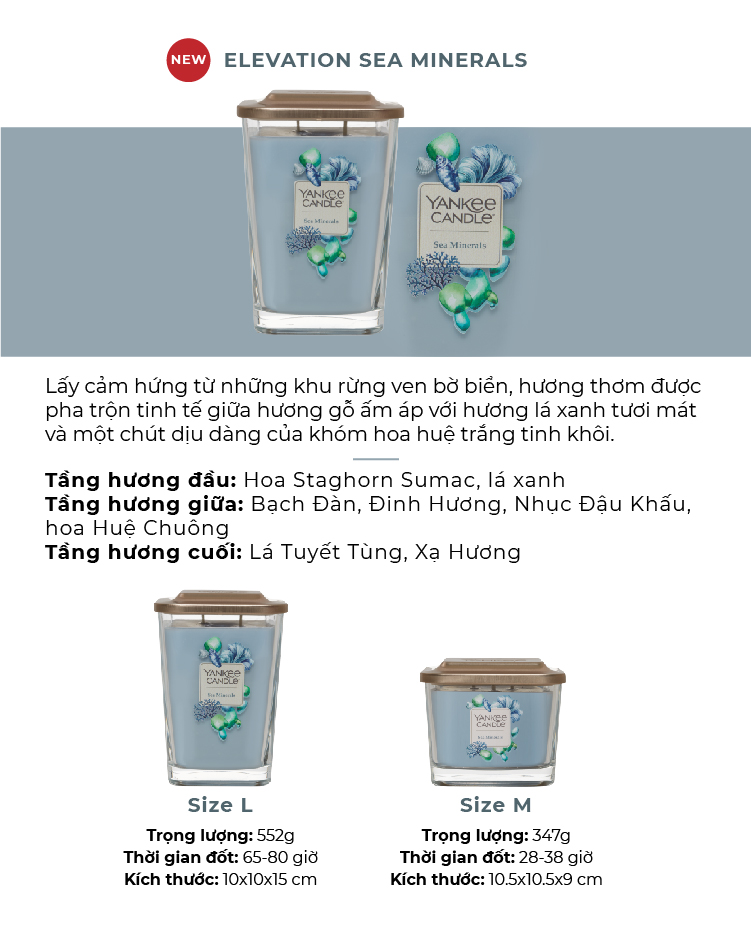 ✨Nến ly vuông Elevation Yankee Candle size S - Sea Minerals (96g)