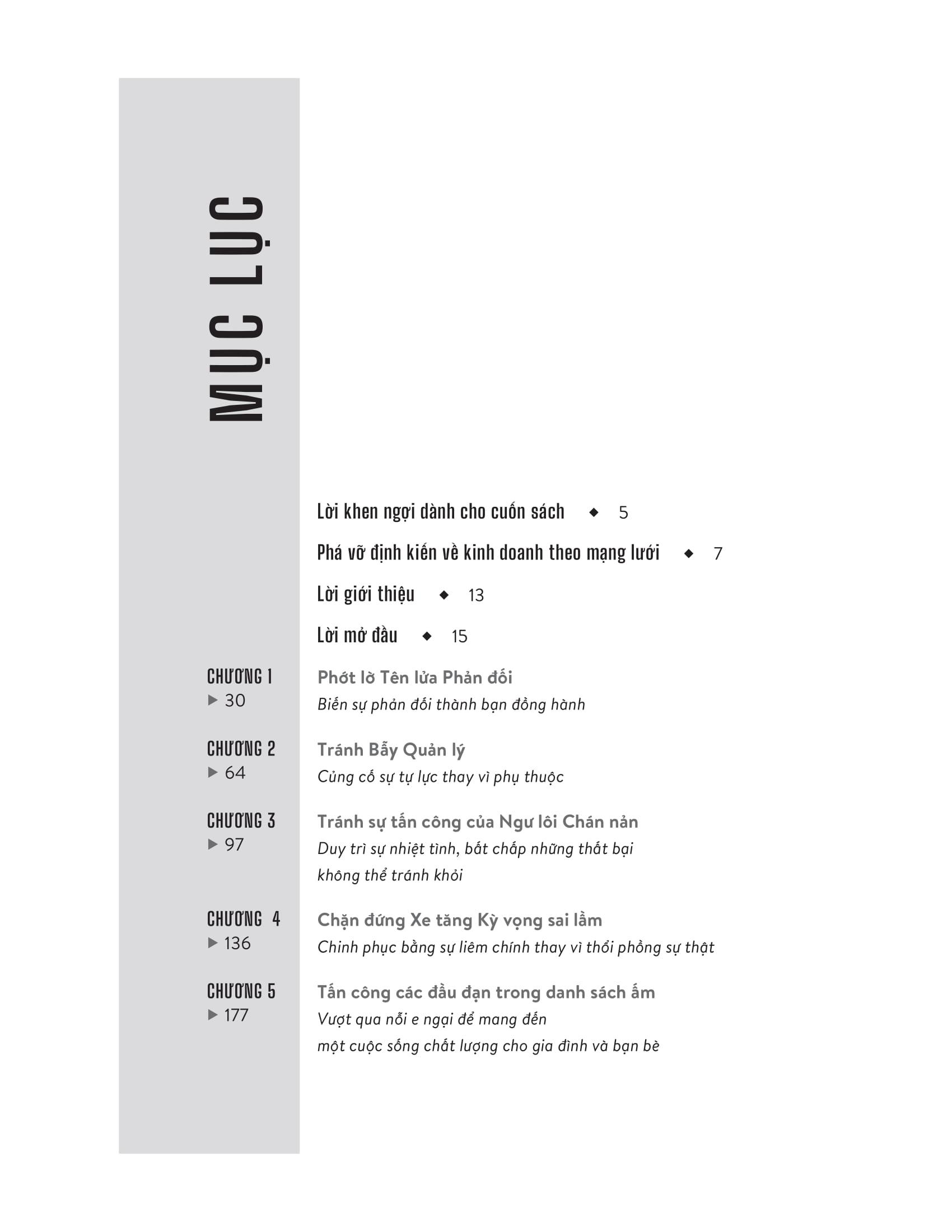 Cuốn sách đề cập đến các vấn đề phổ biến mà người mới bắt đầu thường gặp phải như: nỗi sợ hãi bị từ chối, sợ bị mất uy tín và danh dự, các cạm bẫy mà chính những người mới tham gia lẫn có kinh nghiệm vẫn hay mắc phải dẫn đến thất bại.