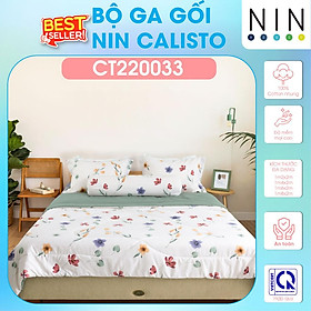 ✨NEW 2024 Bộ 3,4 món drap cotton, áo gối NIN Calisto CT220033 1m2, 1m4, 1m6, 1m8 bọc nệm bo chun, cao cấp