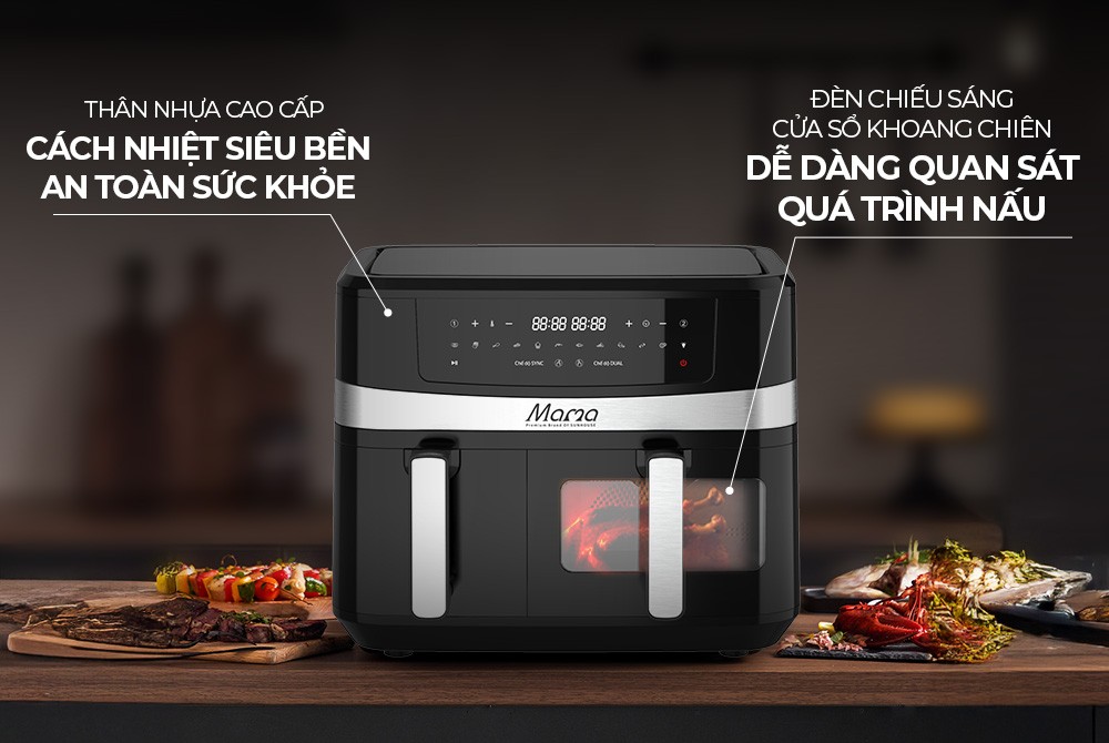 NỒI CHIÊN KHÔNG DẦU 2 NGĂN 10L SUNHOUSE MAMA SHD4098 | MỘT LẦN NẤU, VẠN MÓN NGON