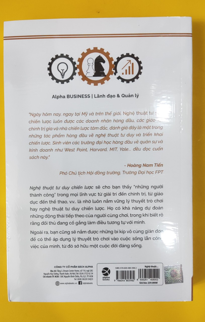 "Ngay tại Mỹ và trên thế giới, Nghệ thuật tư duy chiến lược luôn được các doanh nhân hàng đầu, các giáo sư, chính trị gia và nhà chiến lược tâm đắc, đánh giá đây là một trong những tác phẩm hàng đầu về nghệ thuật tư duy và chiển khai chiến lược. Sinh viên các trường đại học hàng đầu về quân sự và kinh doanh như West Point, Harvard, MIT, Y đều đọc cuốn sách này." - Ông Hoàng Nam Tiến - Phó Chủ tịch Hội đồng trường, Trường Đại học FPT
