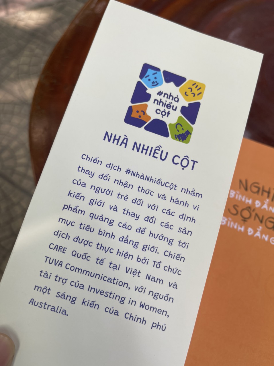 Chiến dịch #NhàNhiềuCột nhằm thay đổi nhận thức và hành vi của người trẻ đối với các định kiến giới và thay đổi các sản phẩm quảng cáo để hướng tới mục tiêu bình đẳng giới. Chiến dịch được thực hiện bởi Tổ chức CARE Quốc tế tại Việt Nam và TUVA Communication, với nguồn tài trợ của Investing in Women, một sáng kiến của Chính phủ Australia.