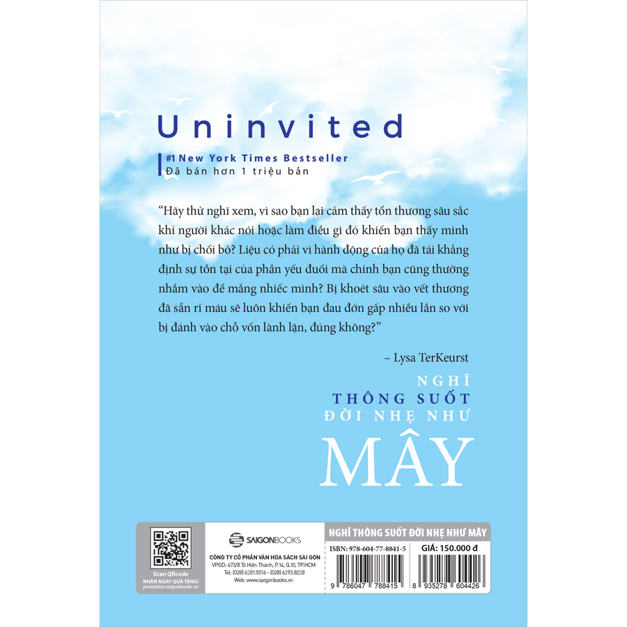 Nghĩ Thông Suốt, Đời Nhẹ Như Mây------------ Uninvited: Nghĩ thông suốt, đời nhẹ như mâyKẻ thù luôn muốn chúng ta cảm thấy bị từ chối, bị bỏ rơi và cô đơTrong Nghĩ thông suốt, đời nhẹ như mây, tác giả...