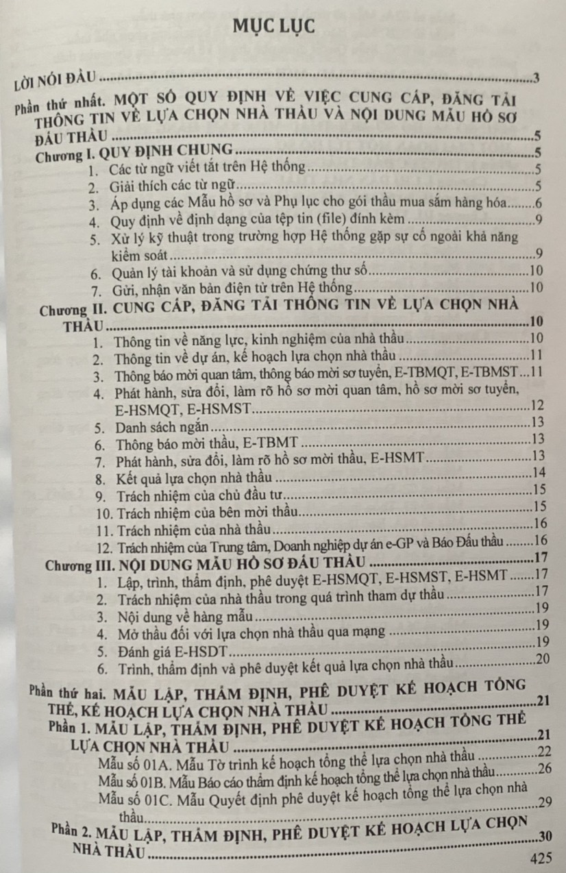 Nghiệp vụ đấu thầu mua sắm hàng hóa qua mạng (bao gồm cả trường hợp mua sắm tập trung) Hướng dẫn việc cung cấp, đăng tải thông tin về lựa chọn nhà thầu và mẫu hồ sơ đấu thầu trên hệ thống mạng đấu thầu quốc gia Tác giả: Tăng Bình (Hệ thống) NXB: Nhà Xuất Bản Hồng Đức Công ty phát hành: Dân Hiền Ngày phát hành: 3.2024 Số trang: 420 trang Khổ sách: 19x27 cm Giá bìa: 395.000. Ngày 15 tháng 02 năm 2024 Bộ Kế hoạch và Đầu tư đã ban hành Thông tư số 01/2024/TT-BKHĐT hướng dẫn việc cung cấp, đăng tải thông tin về lựa chọn nhà thầu và mẫu hồ sơ đấu thầu trên Hệ thống mạng đấu thầu quốc gia. Nhằm kịp thời phổ biến hướng dẫn các bên mời thầu, chào thầu và chủ đầu tư cập nhật các quy định pháp luật mới về đấu thầu, đấu thầu qua mạng và hệ thống mạng đấu thầu quốc gia mới, Nhà Xuất Bản Hồng Đức xuất bản cuốn sách: NGHIỆP VỤ ĐẤU THẦU MUA SẮM HÀNG HÓA QUA MẠNG (BAO GỒM CẢ TRƯỜNG HỢP MUA SẮM TẬP TRUNG) HƯỚNG DẪN VIỆC CUNG CẤP, ĐĂNG TẢI THÔNG TIN VỀ LỰA CHỌN NHÀ THẦU VÀ MẪU HỒ SƠ ĐẤU THẦU TRÊN HỆ THỐNG MẠNG ĐẤU THẦU QUỐC GIA Nội dung cuốn sách bao gồm những nội dung sau: Phần thứ nhất. MỘT SỐ QUY ĐỊNH VỀ VIỆC CUNG CẤP, ĐĂNG TẢI THÔNG TIN VỀ LỰA CHỌN NHÀ THẦU VÀ NỘI DUNG MẪU HỒ SƠ ĐẤU THẦU; Phần thứ hai. MẪU LẬP, THẨM ĐỊNH, PHÊ DUYỆT KẾ HOẠCH TỔNG THỂ, KẾ HOẠCH LỰA CHỌN NHÀ THẦU; Phần thứ ba. HỒ SƠ MỜI THẦU, MỜI SƠ TUYỂN MUA SẮM HÀNG HÓA QUA MẠNG; Phần thứ tƣ. BÁO CÁO ĐÁNH GIÁ HỒ SƠ DỰ THẦU QUA MẠNG CHO GÓI THẦU MUA SẮM HÀNG HÓA; Phần thứ năm. PHỤ LỤC. Trong quá trình hệ thống, mặc dù đã cố gắng nhưng vẫn không tránh khỏi các thiếu sót, rất mong bạn đọc góp ý để hoàn thiện hơn khi tái bản!