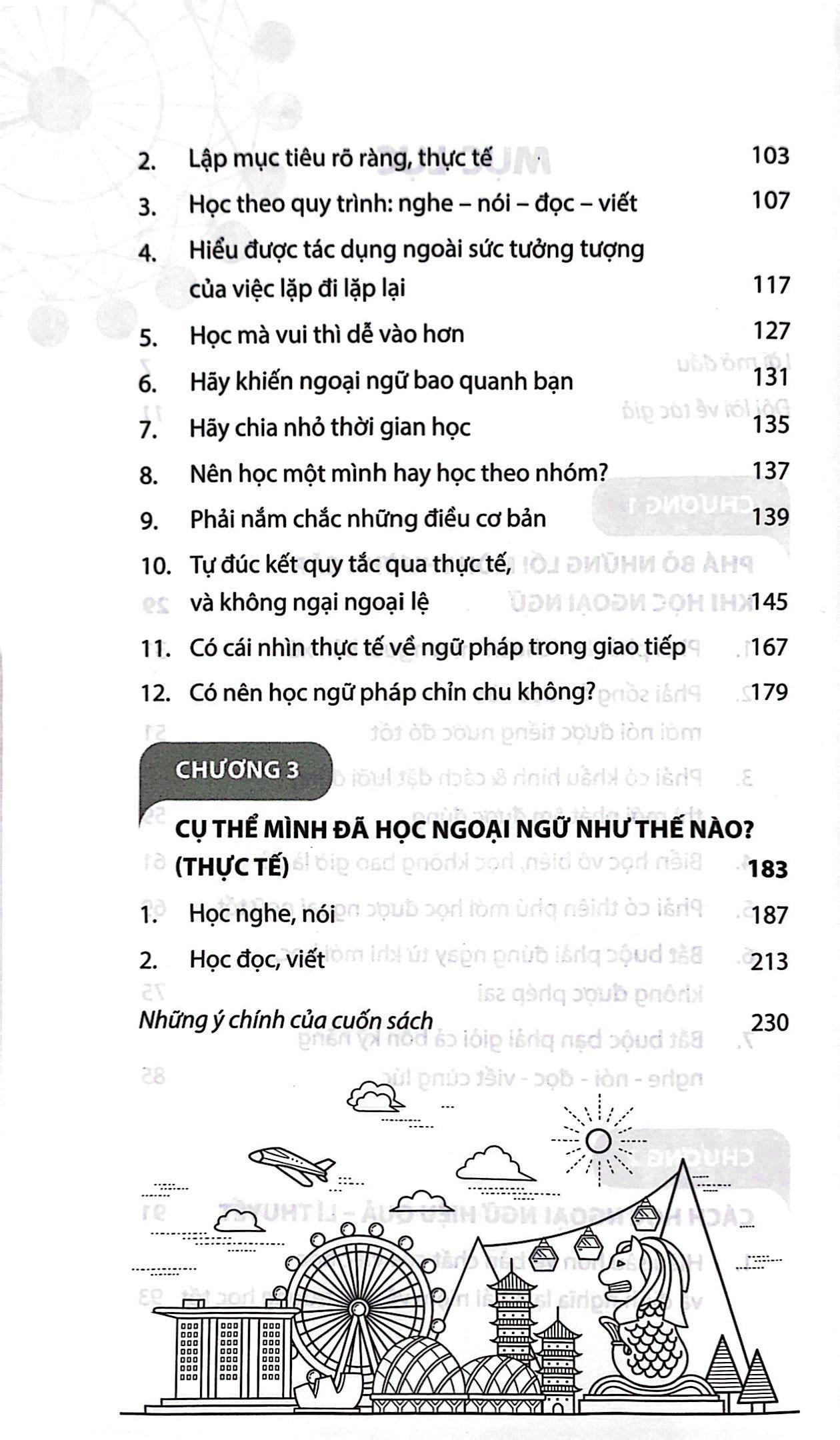 Đây không phải là một cuốn sách dài, nên có thể bạn sẽ đọc hết trong một hai ngày. Nó cũng không dạy bạn ngữ pháp, hay từ vựng gì cả, vì ngoài kia đã có vô vàn cuốn sách viết chuyên sâu về những chủ đề đó. Ngoại ngữ là đại dương vô biên, đi không bao giờ hết, không có hải đăng chỉ đường, bạn sẽ bị lạc lõng, nản lòng, và bỏ cuộc. Trong đại dương bao la ấy, đại đa số những thứ mà bạn nhìn thấy đều không quan trọng, 10% trong số chúng sẽ đem lại cho bạn 90% thành quả thực tế trong cuộc sống. Cuốn sách này sẽ phần nào giúp bạn định hướng để tìm ra 10% ấy cho m.ình.