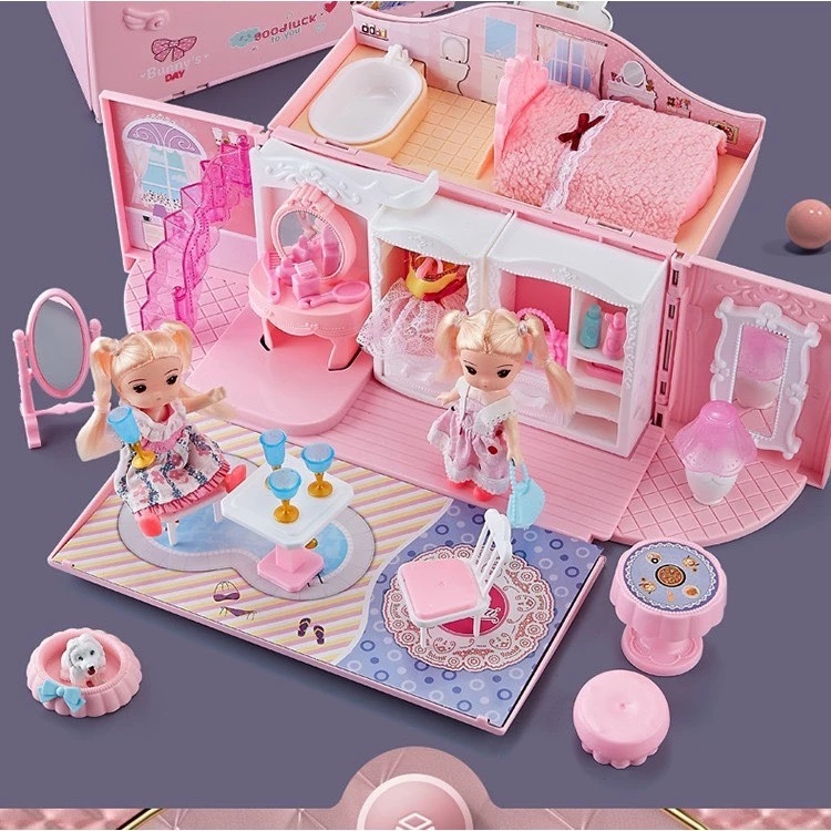 ✨Ngôi Nhà Búp Bê Thiết Kế Dạng Túi Xách Kèm 2 Búp Bê, Đồ Chơi Búp Bê Dễ Thương Cho Bé
