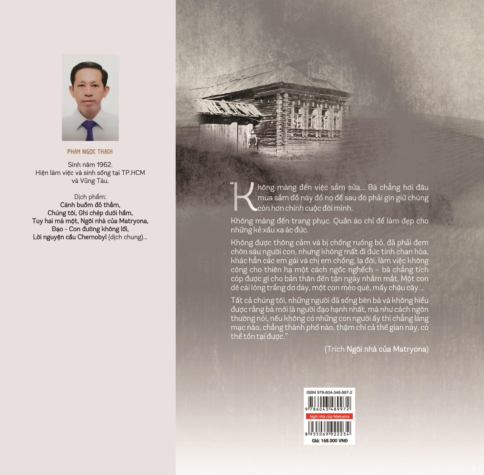 “Ngôi nhà của Matryona” (Phạm Ngọc Thạch dịch, Nhà xuất bản Phụ nữ Việt Nam phát hành) là tuyển tập các truyện ngắn và đoản văn nổi tiếng của Alexander Solzhenitsyn. Sách gồm 4 truyện ngắn, 2 đoản văn và Phụ lục (“Diễn từ Nobel”, “Bài phát biểu tại lễ trao giải Nobel”, “Diễn từ Templeton”, tiểu luận “Sống không dối trá!”), cuối sách có các mốc thời gian quan trọng và hình ảnh của nhà văn.