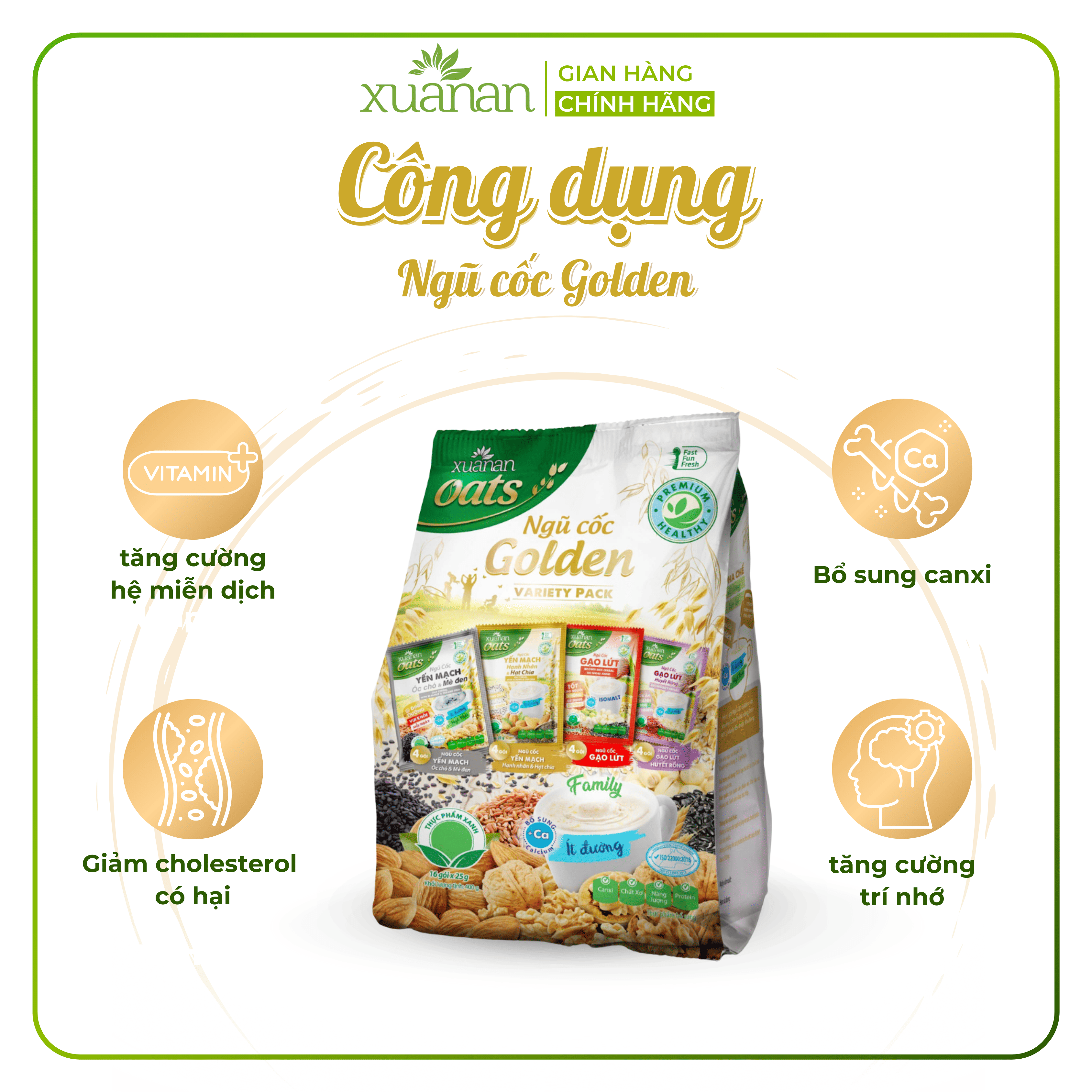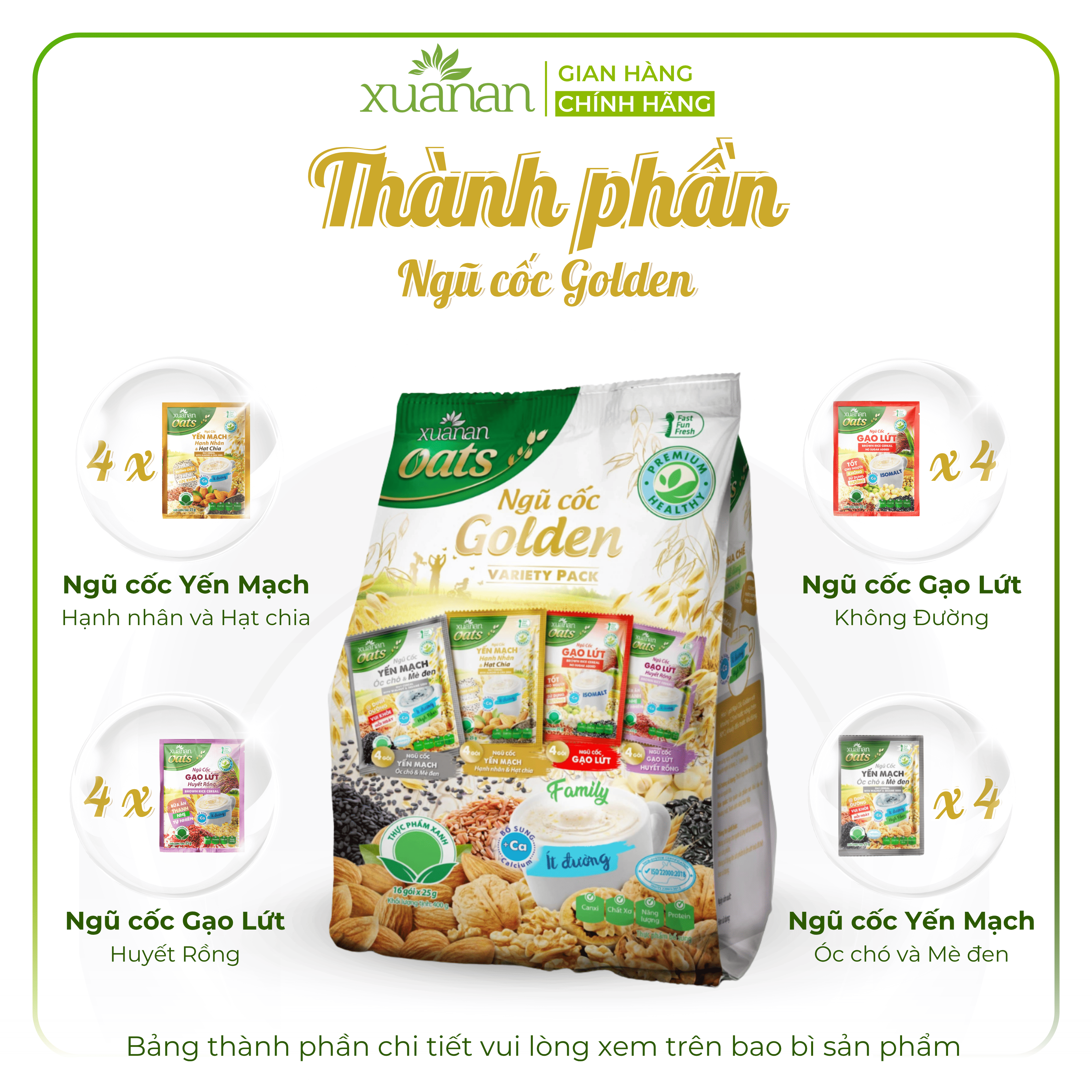✨Ngũ Cốc Golden (Variety Pack) Xuân An [ít đường] Túi 400G {25g*16 gói}