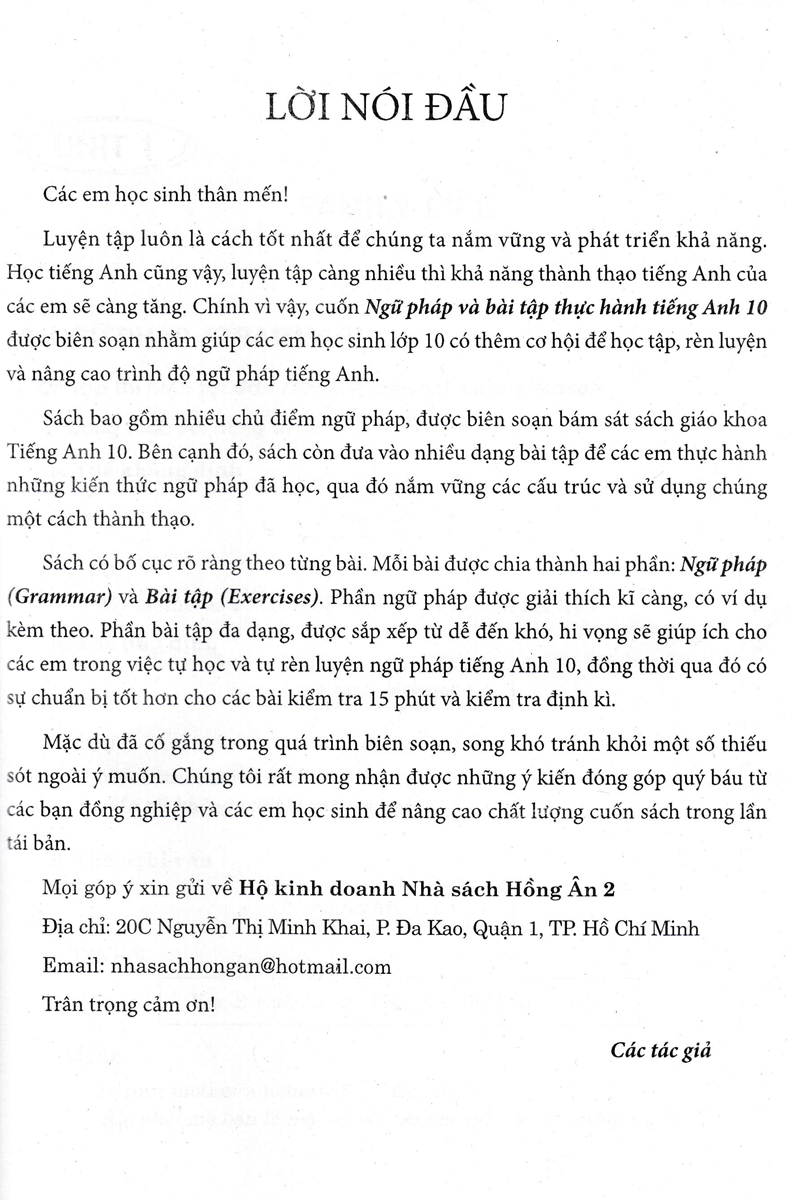 Để đáp ứng nhu cầu học tiếng Anh ngày càng nâng cao của học sinh, chúng tôi phát hành cuốn NGỮ PHÁP TIẾNG ANH (dành cho học sinh), một ấn bản được biên soạn dựa