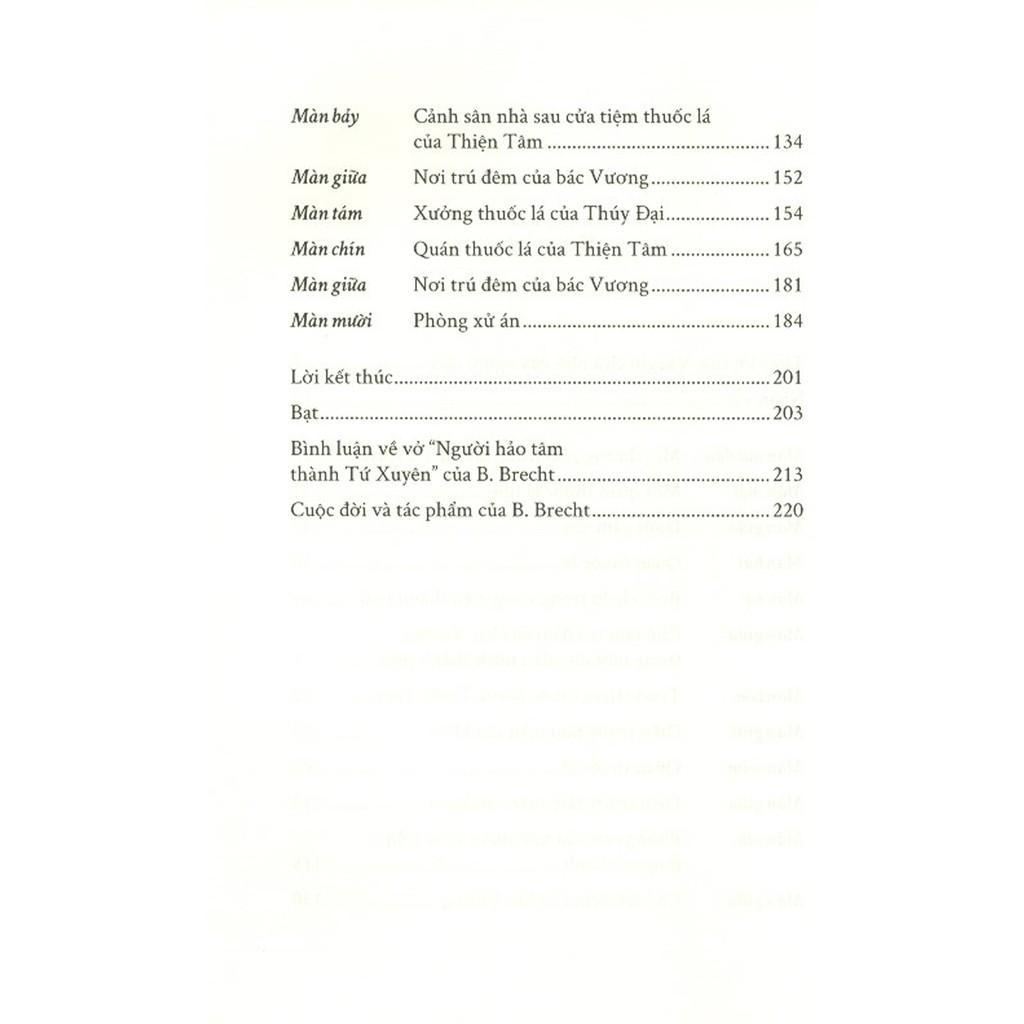 NGƯỜI HẢO TÂM THÀNH TỨ XUYÊN Đề tài trọng tâm mà Brecht triển khai trong vở kịch này là sự thắc mắc về những điều kiện cho một cuộc sống xứng đáng với con người. Dưới hình thức mộ...