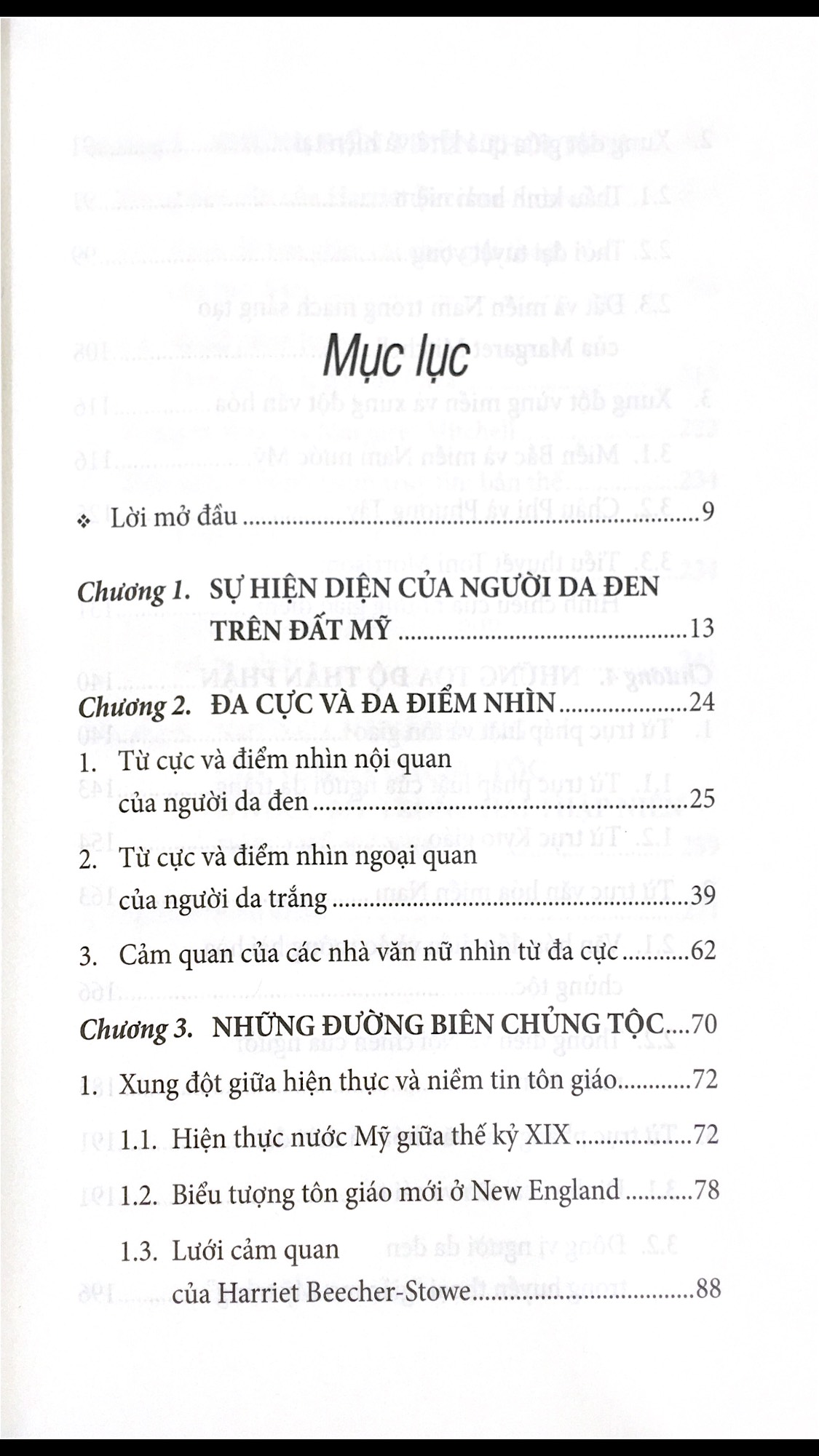 Công trình này sẽ phác thảo hình ảnh người da đen trong văn học Mỹ từ ngày đầu lập quốc đến hết thế kỷ XX từ điểm nhìn tự bên trong của chính người da đen, và điểm nhìn bên ngoài của người da trắng. Nội dung trọng tâm của chuyến luận sẽ đi vào tìm hiểu vấn đề người da đen từ cảm quan nghệ thuật của ba nữ nhà văn nổi tiếng với các tác phẩm viết về người da đen tiêu biểu nhất, trở thành những hiện tượng văn học nổi bật không chỉ của thời đại mà nó ra đời: Túp lều bác Tom (Uncle Toms Cabin, 1852) của Harriet Beecher- Stowe, Cuốn theo chiều gió (Gone with the Wind, 1936) của Margaret Mitchell và tiểu thuyết của Toni Morrison trong đó trọng tâm là Bài ca Solomon (Song of Solomon, 1977). Ba nhà văn này không chỉ thuộc về những sắc tộc và thời đại khác nhau mà họ còn sống trong những môi trường văn hóa khác nhau, có thể mang tính chất đại diện cho những vùng văn hóa khác nhau của nước Mỹ. Vì vậy, quan điểm của họ có thể xem là tiếng nói đại diện về/của người da đen trong suốt chiều dài hơn 400 năm lịch sử, trong chiều rộng không gian và chiều sâu văn hóa. Đây là điểm cốt lõi để có thể khảo sát người da đen trong bản đồ văn học, bản đồ văn hóa Mỹ.