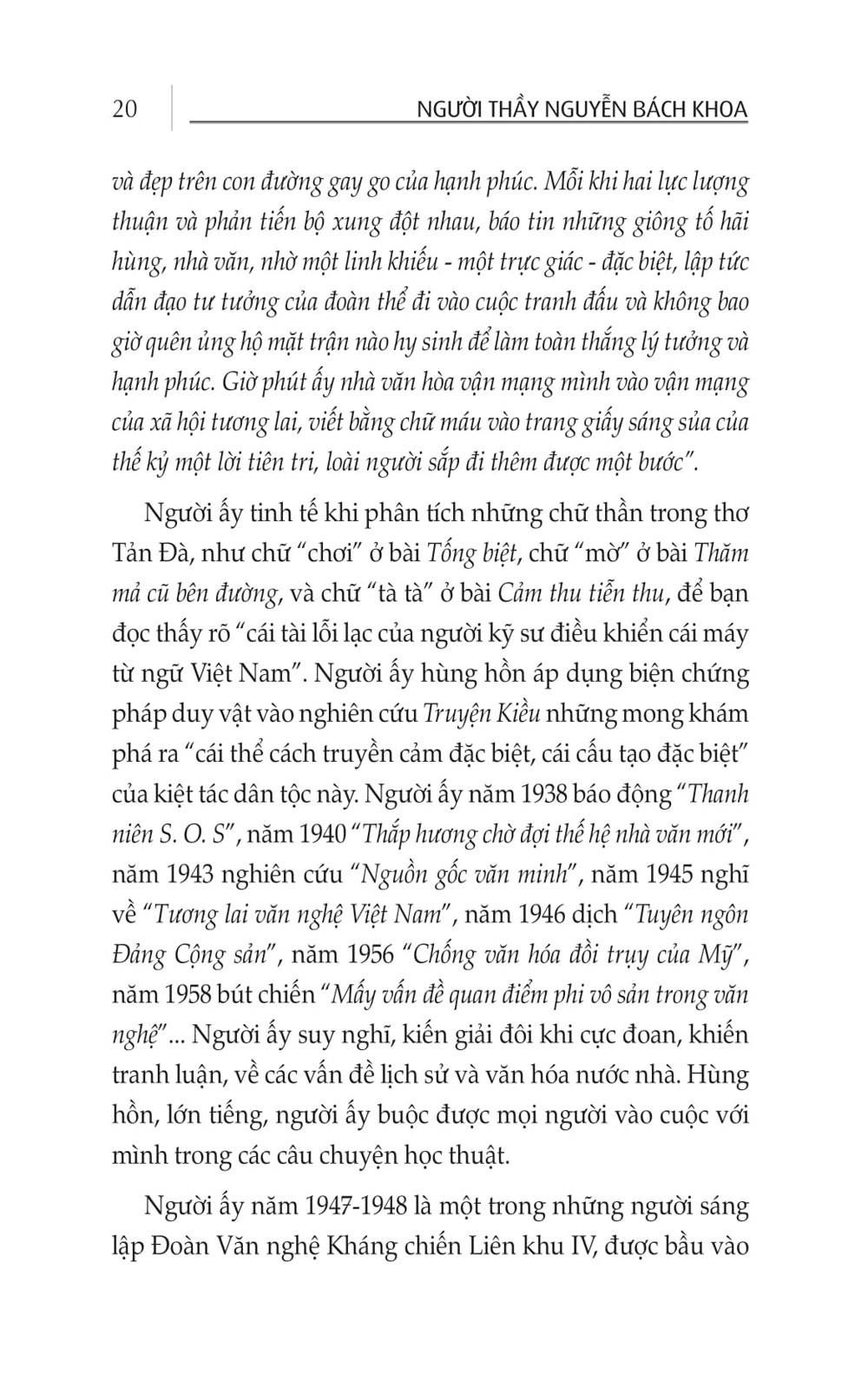 Mua tại TiktokNhà văn – Giáo sư Nguyễn Bách Khoa – Trương Tửu (1913-1999) là một trong những nhà lý luận phê bình tài ba nhất của thế hệ tiền chiến, một trong những người đi tiên phong trong lãnh vực phê bình văn học, ông còn sáng tác một loạt tiểu thuyết. Người thầy Nguyễn Bách Khoa là những trang viết về cuộc đời và sự nghiệp, những nghiên cứu học thuật và sáng tác, những hồi ức, kỷ niệm về ông…
