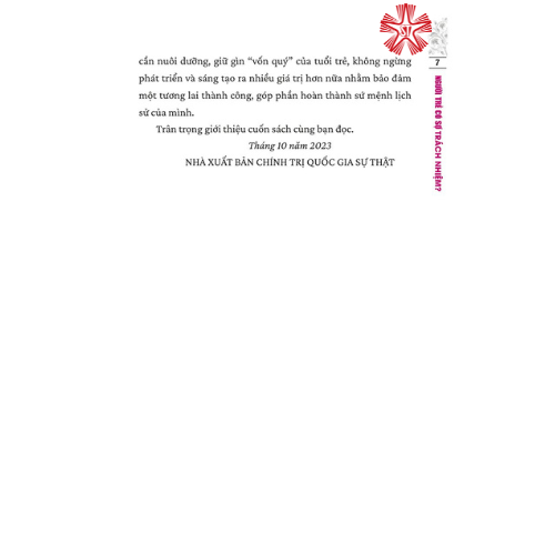 Các tác giả cùng trao đổi, chia sẻ quan điểm, suy nghĩ, trăn trở, thể hiện niềm tin, sự khẳng định đối với vai trò của người trẻ trong công việc và cuộc sống hiện nay; đưa ra những góc nhìn, đánh giá đúng đắn, khách quan về thế hệ trẻ và lý do tại sao cần trao cho họ những cơ hội, chính sách ưu tiên để phát triển. Đặc biệt, ý nghĩa xuyên suốt cuốn sách mà tập thể tác giả muốn gửi gắm là sự động viên, khích lệ thế hệ trẻ cần nuôi dưỡng, giữ gìn “vốn quý” của tuổi trẻ, không ngừng phát triển và sáng tạo ra nhiều giá trị hơn nữa nhằm bảo đảm một tương lai thành công, góp phần hoàn thành sứ mệnh lịch sử của mình. Trong đó, có một số bài tiêu biểu như: bài viết “Bệnh sợ trách nhiệm” của Tổng Bí thư Nguyễn Phú Trọng đăng trên Tạp chí Cộng sản năm 1973; “Vấn đề thanh niên trong tư tưởng Hồ Chí Minh” của GS.TS Tạ Ngọc Tấn, Phó Chủ tịch Thường trực Hội đồng Lý luận Trung ương; “Nâng cao hiệu quả công tác tư tưởng đối với thanh niên trong tình hình mới” của PGS.TS Lê Hải Bình, Ủy viên dự khuyết Trung ương Đảng, Phó Trưởng Ban Tuyên giáo Trung ương; “Trách nhiệm của đội ngũ công chức trẻ trong giai đoạn hiện nay” của PSG.TS Phạm Minh Tuấn, Phó Tổng biên tập phụ trách Tạp chí Cộng sản; "Học sinh, sinh viên, thanh niên dân tộc thiểu số rèn đức, luyện tài, phấn đấu vươn lên đóng góp vào sự phát triển của cộng đồng, dân tộc" của đồng chí Hầu A Lềnh, Ủy viên Trung ương Đảng, Bộ trưởng, Chủ nhiệm Ủy ban Dân tộc; “Làm thế nào để đội ngũ trí thức trẻ phát huy được trách nhiệm, hoàn thành tốt vai trò lịch sử của mình?” của GS.TS Phùng Hữu Phú
