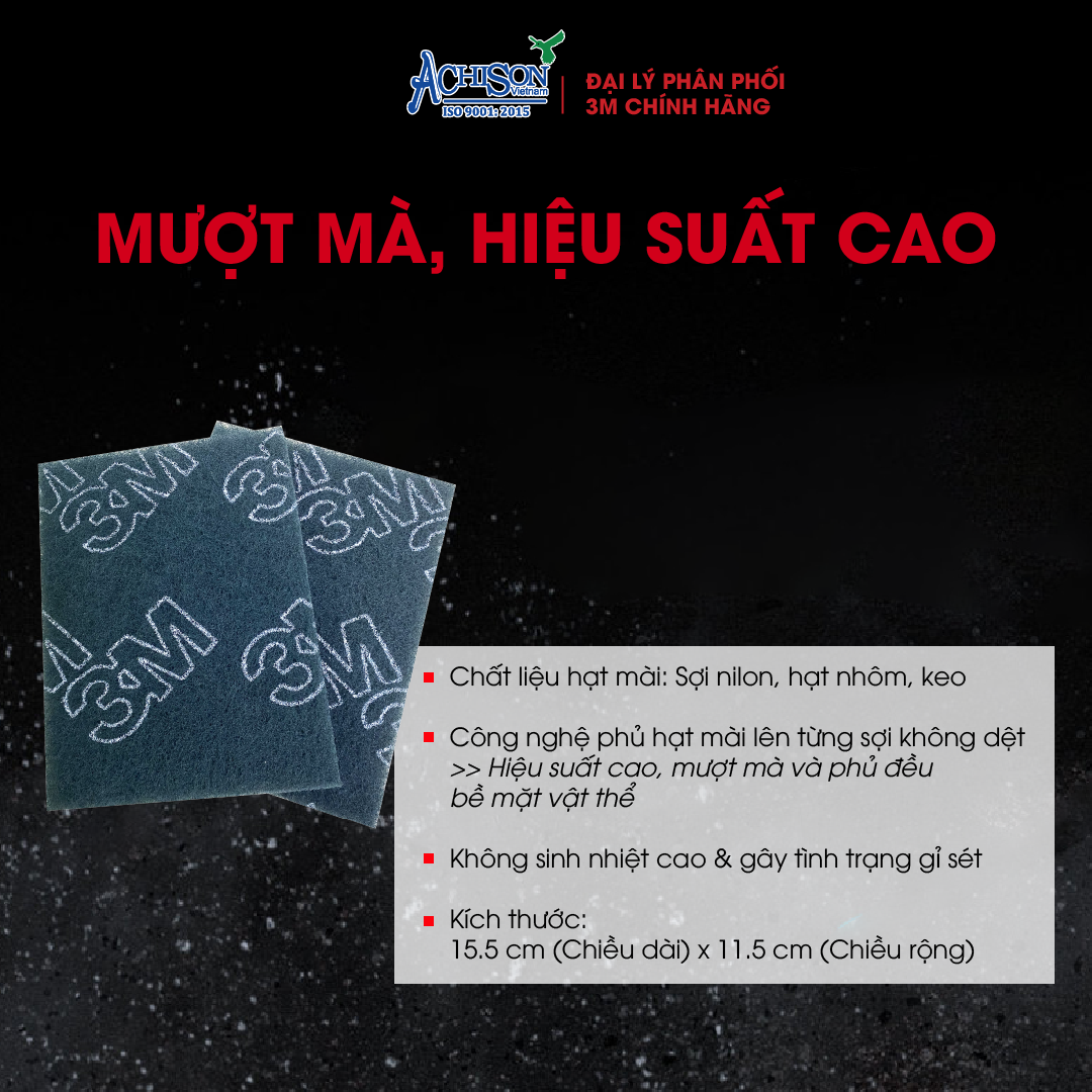 Bùi nhùi 3M Mighty Blue được sử dụng để làm sạch và mài tạo độ bám, sử dụng được trong môi trường ướt, khô và dung môi.