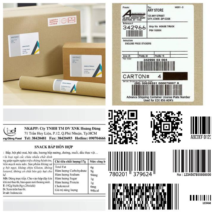 - Kích thước: 62mm x 100mm x 300 labels