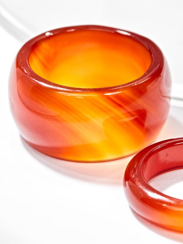 Nhẫn Cặp Nam Nữ Đá Mã Não Đỏ: Phù hợp với người mệnh Hỏa – mệnh Thổ, mang lại may mắn và sức khoẻ cho người mệnh này.