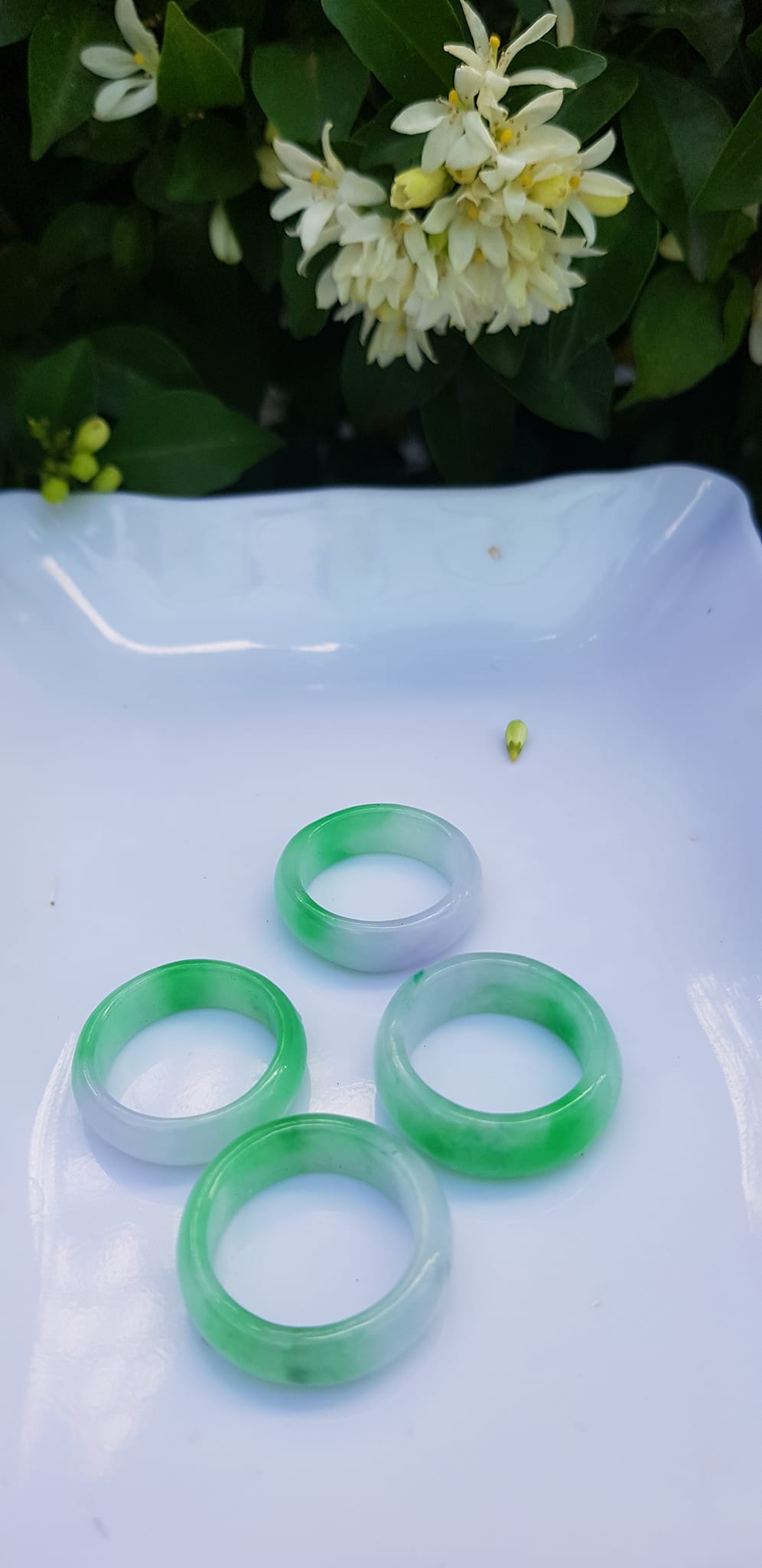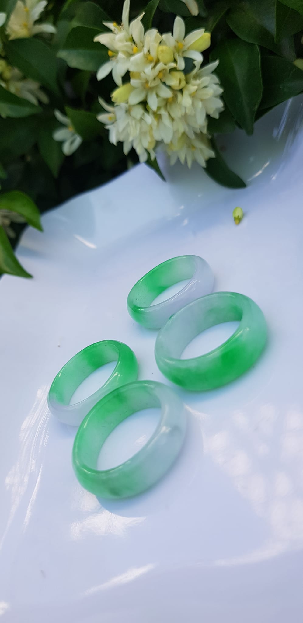 Nhẫn đeo tay nữ đá cẩm thạch tự nhiên Màu xanh lý tươi trắng bóng rất đẹp Nhẫn Ni 17mm x cao 6mm/7mm ạ