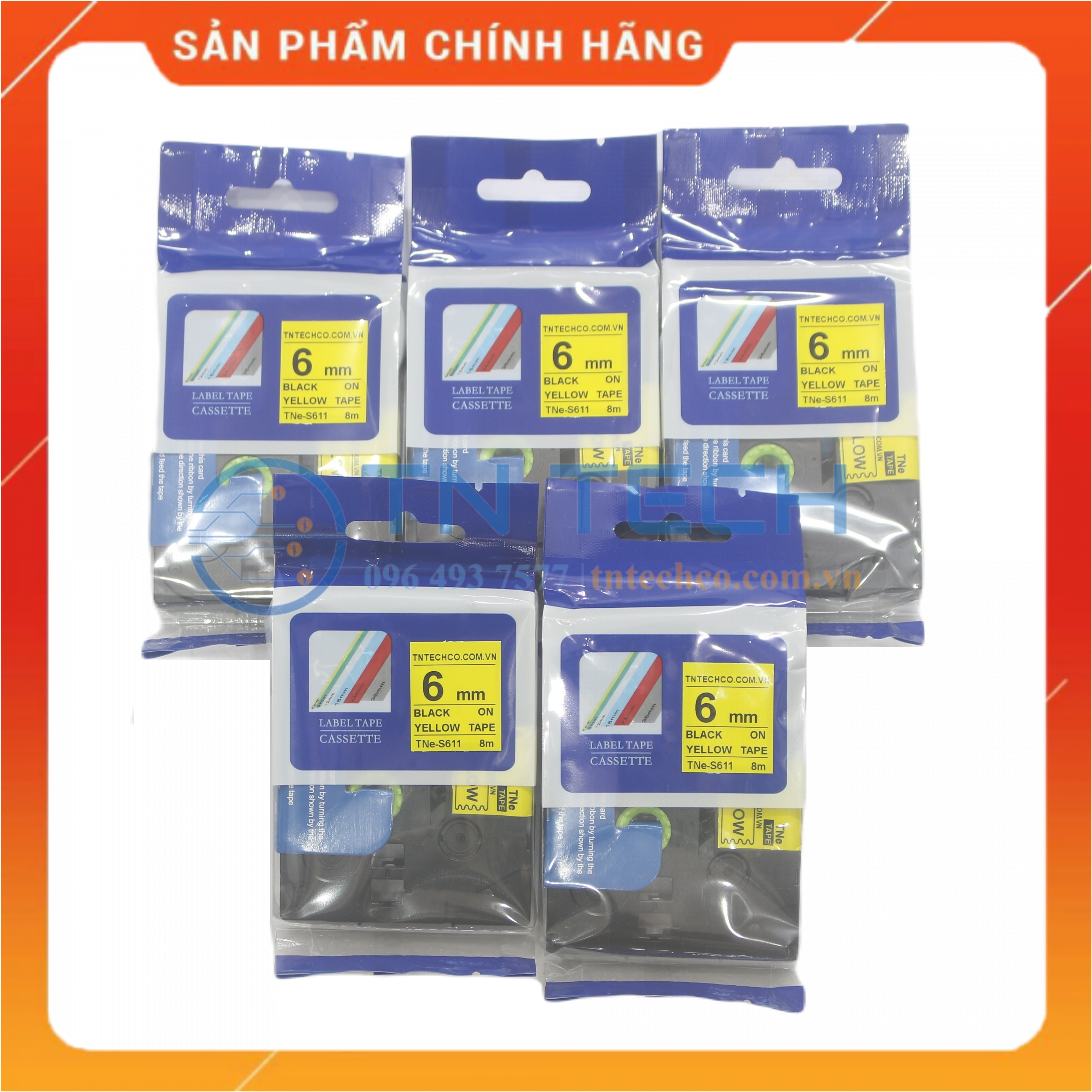 Nhãn in TNE-S611 Brother Nhãn in đa lớp sử dụng cho máy in nhãn Brother, tất cả trong 1, mực nằm bên trong, chống chịu dung môi, hóa chất, nước, dầu mỡ, nhiệt độ Mã