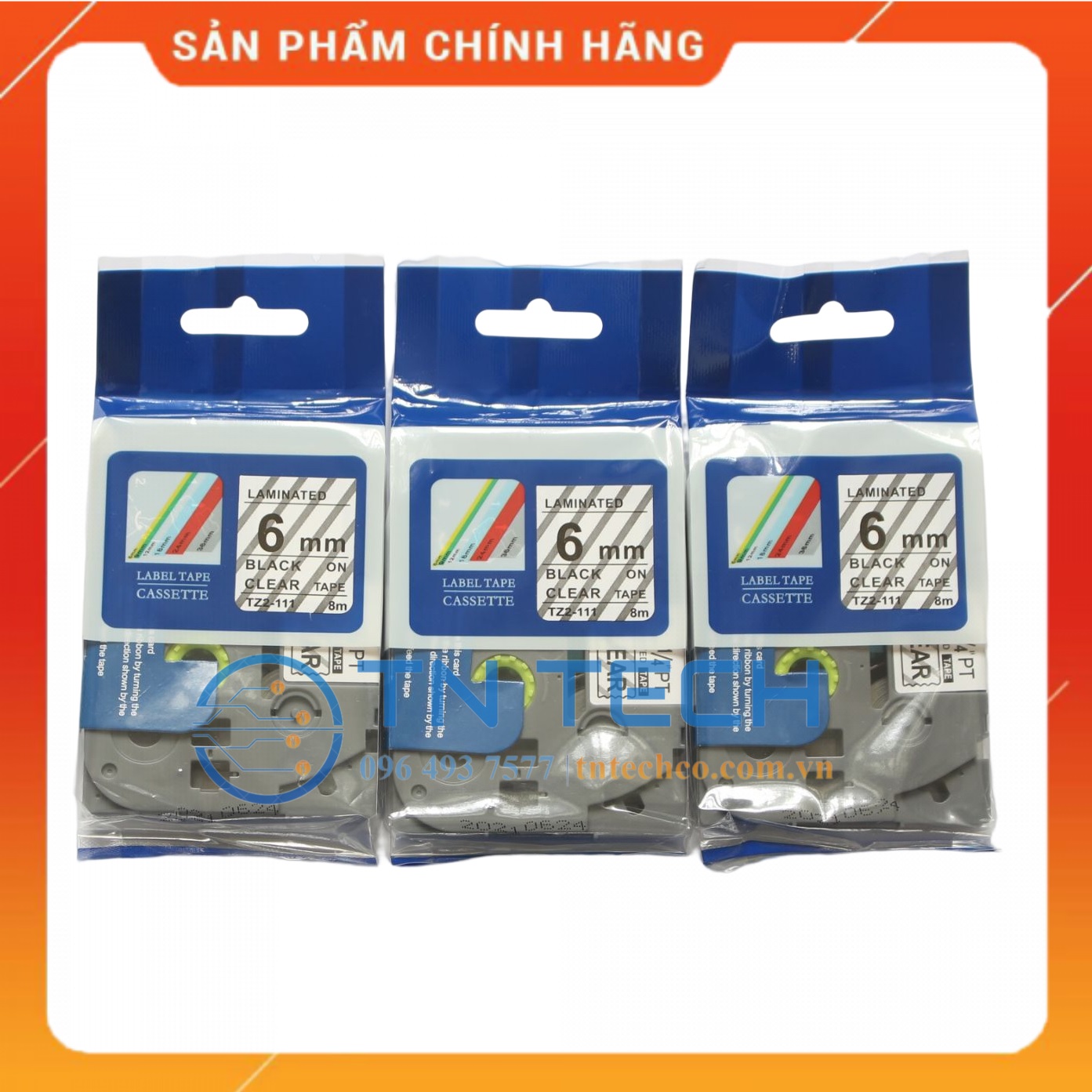 Nhãn in TZ2-111 Brother Nhãn in đa lớp sử dụng cho máy in nhãn Brother, tất cả trong 1, mực nằm bên trong, chống chịu dung môi, hóa chất, nước, dầu mỡ, nhiệt độ Mã