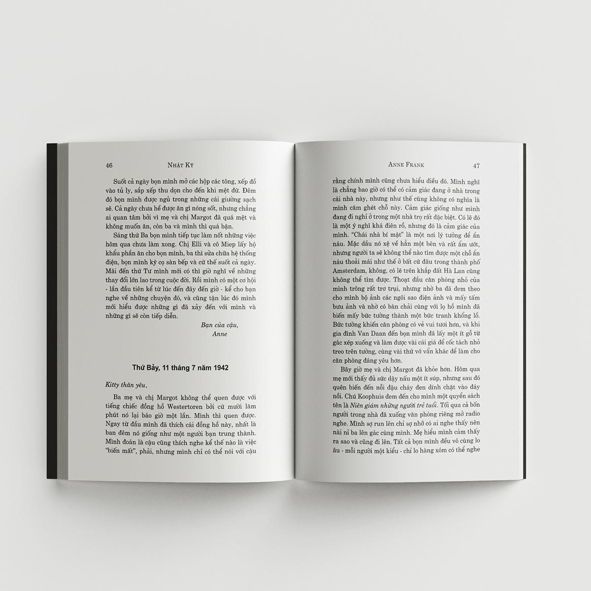 Trong nhật ký của mình, Anne Frank ghi lại một cách sống động những trải nghiệm trong thời gian đó. Suy tư, cảm động, rồi hài hước, những miêu tả của cô là một lời ca ngợi về lòng dũng cảm cũng như sự yếu đuối của con người, một bức chân dung tự họa tuyệt vời về một cô gái trẻ thông minh, nhạy cảm, một tài năng hứa hẹn đã bị cắt ngang một cách bi thảm.