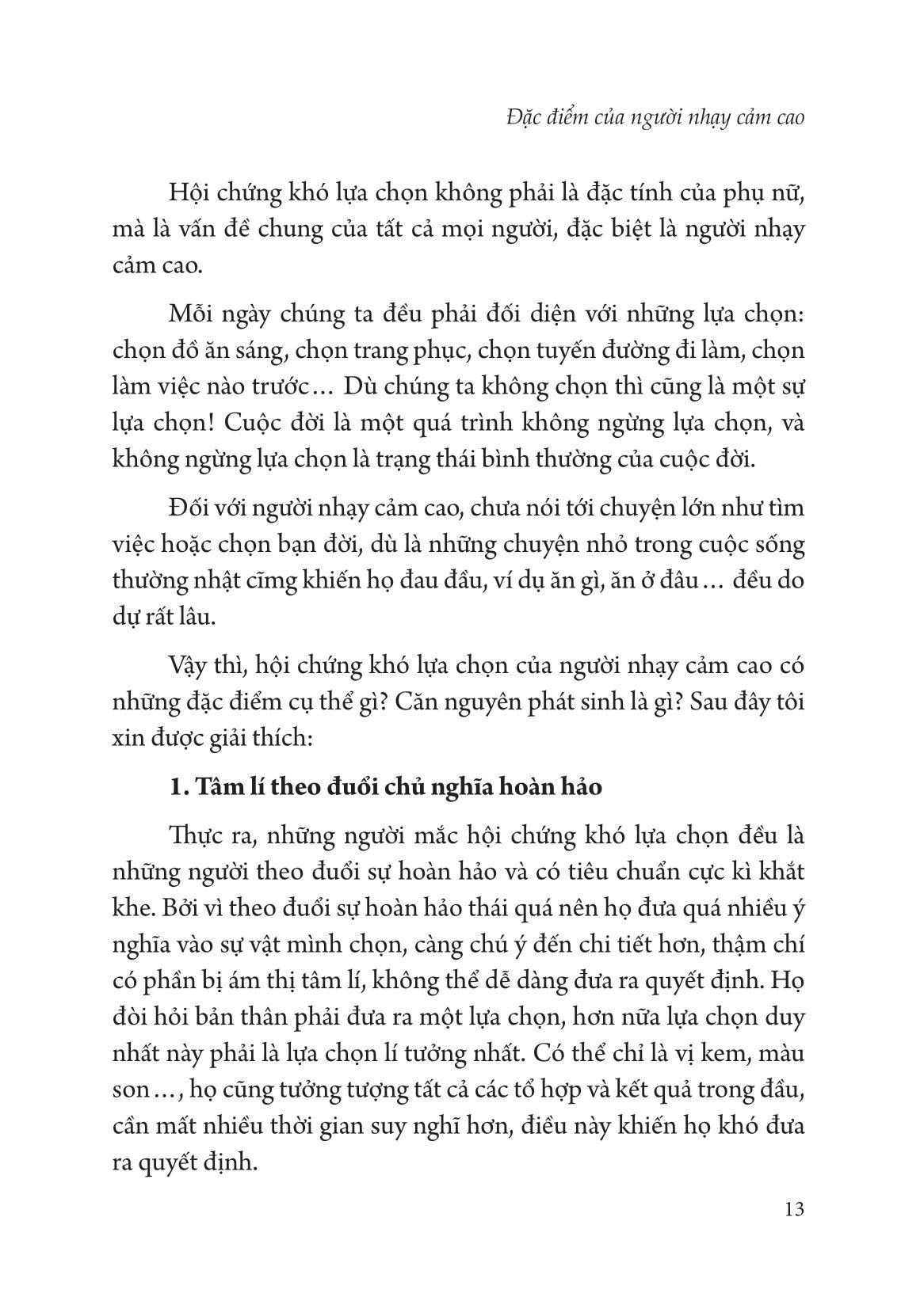 Cuốn sách này giúp bạn hiểu được những đặc điểm, ưu thế của người nhạy cảm, gốc rễ và bản chất của sự nhạy cảm, đồng thời chỉ ra những sai lầm trong nhận thức về tính nhạy cảm cũng như cách thoát khỏi những rắc rối do tính nhạy cảm gây ra, và hướng dẫn mọi người sử dụng hợp lí thiên tính nhạy cảm để có được một cuộc sống tốt đẹp hơn!