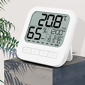 Nhiệt kế phòng ẩm kế điện tử phòng ngủ cho bé có đèn nền và đồng hồ