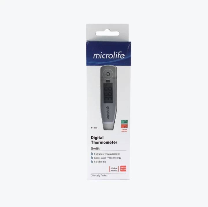 Nhiệt kế điện tử Microlife MT 550 là giải pháp thay thế nhiệt kế truyền thống, cảm ứng nhiệt bằng công nghệ đầu dò vàng GoldTerm không gây dị ứng và cho kết quả nhanh chỉ trong 10 giây, chất lượng được khẳng định qua hơn 30 năm.