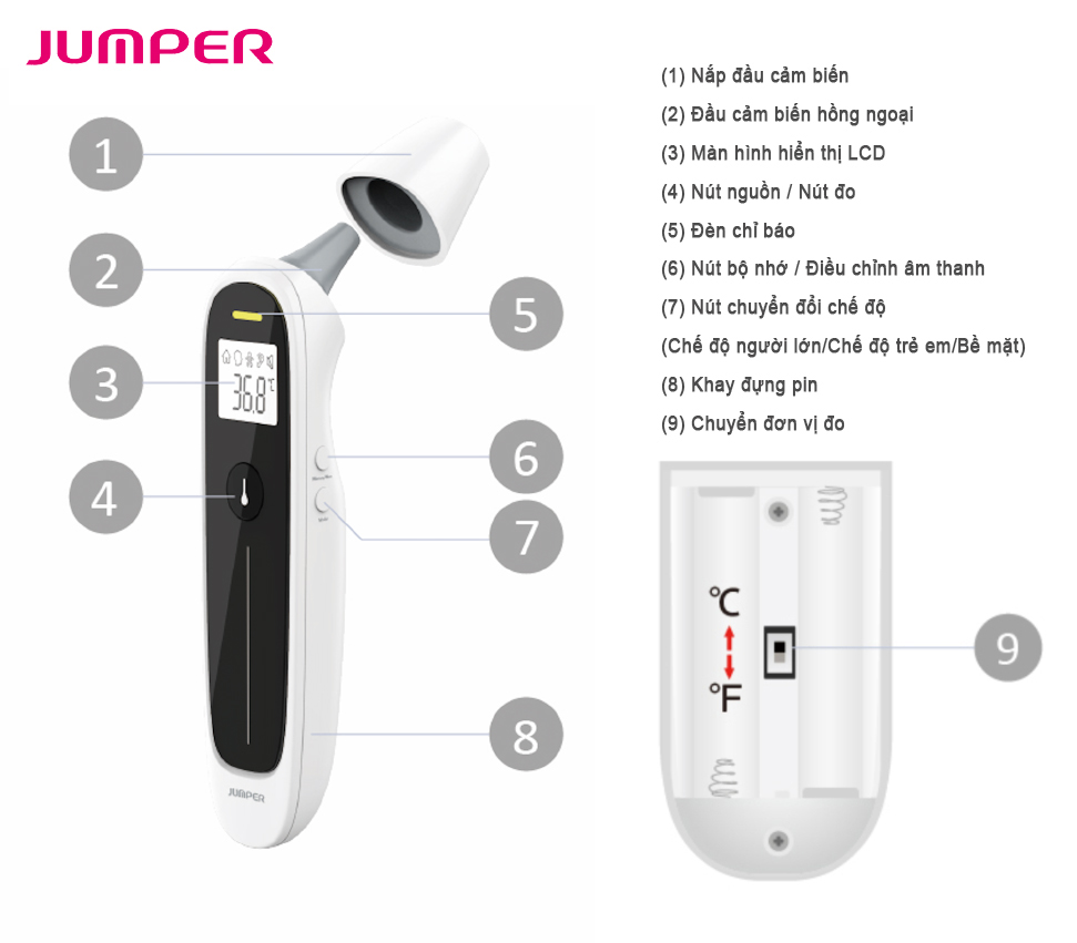 Thông tin về nhiệt kế đa năng Jumper JPD-FR300 Nhiệt kế đa năng Jumper JPD-FR300 là sản phẩm đo nhiệt kế của hàng Jumper nổi tiếng chuyên về các thiết bị y tế - 4