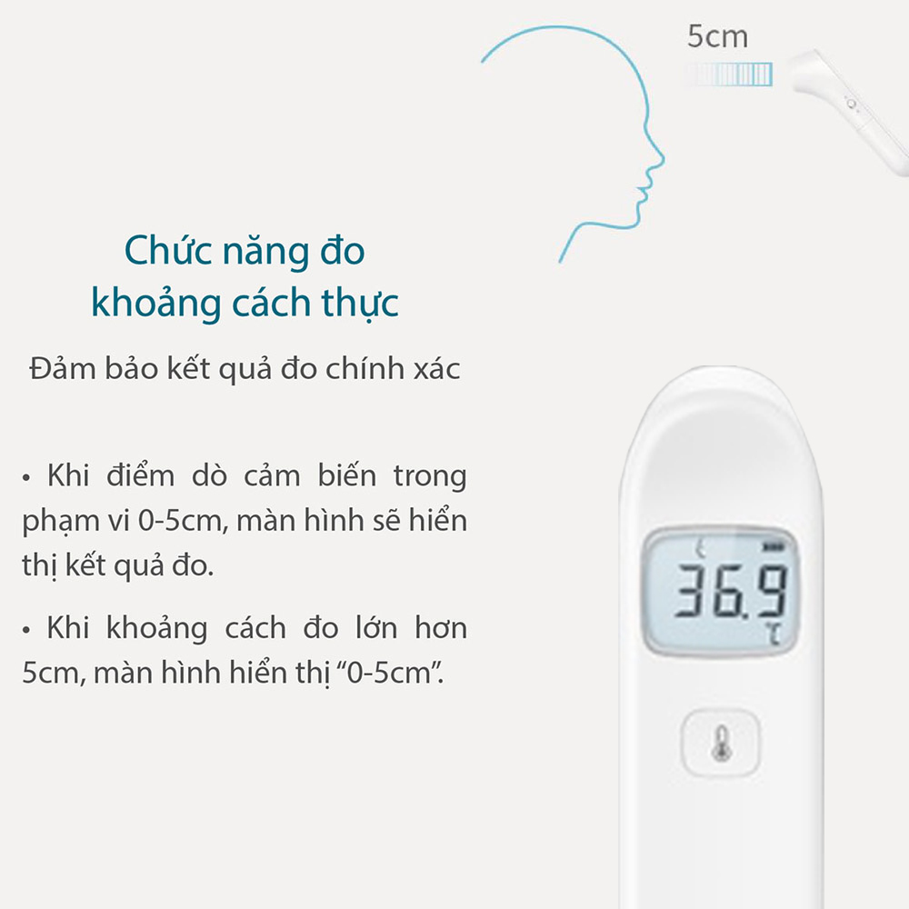 SẢN PHẨM BẢO HÀNH :2 NĂM. Đo nhiệt độ trán không tiếp xúc phù hợp với mọi lứa tuổi, kể cả trẻ sơ sinh và trẻ nhỏ. Tính năng sản phẩm • Có thể lựa