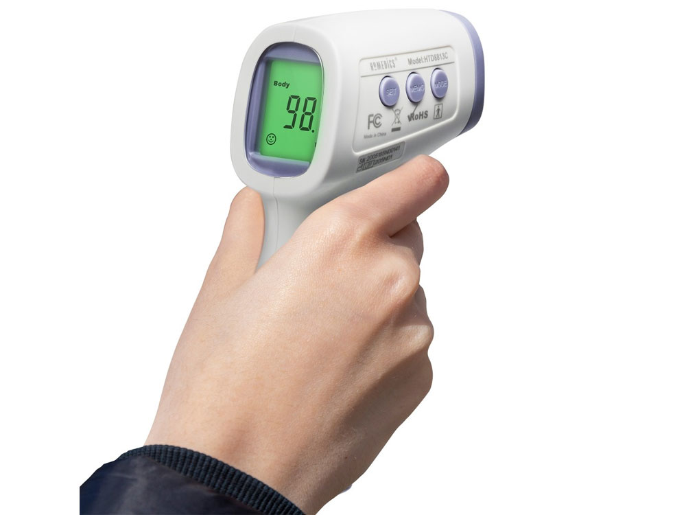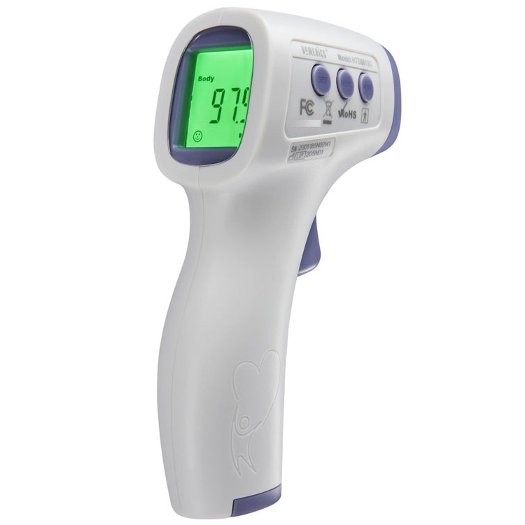 Nhiệt kế điện tử  trang bị bộ phận cảm biến hồng ngoại mới nhất  không cần tiếp xúc nhưng vẫn biết chính xác được nhiệt độ cơ thể và vật thể.