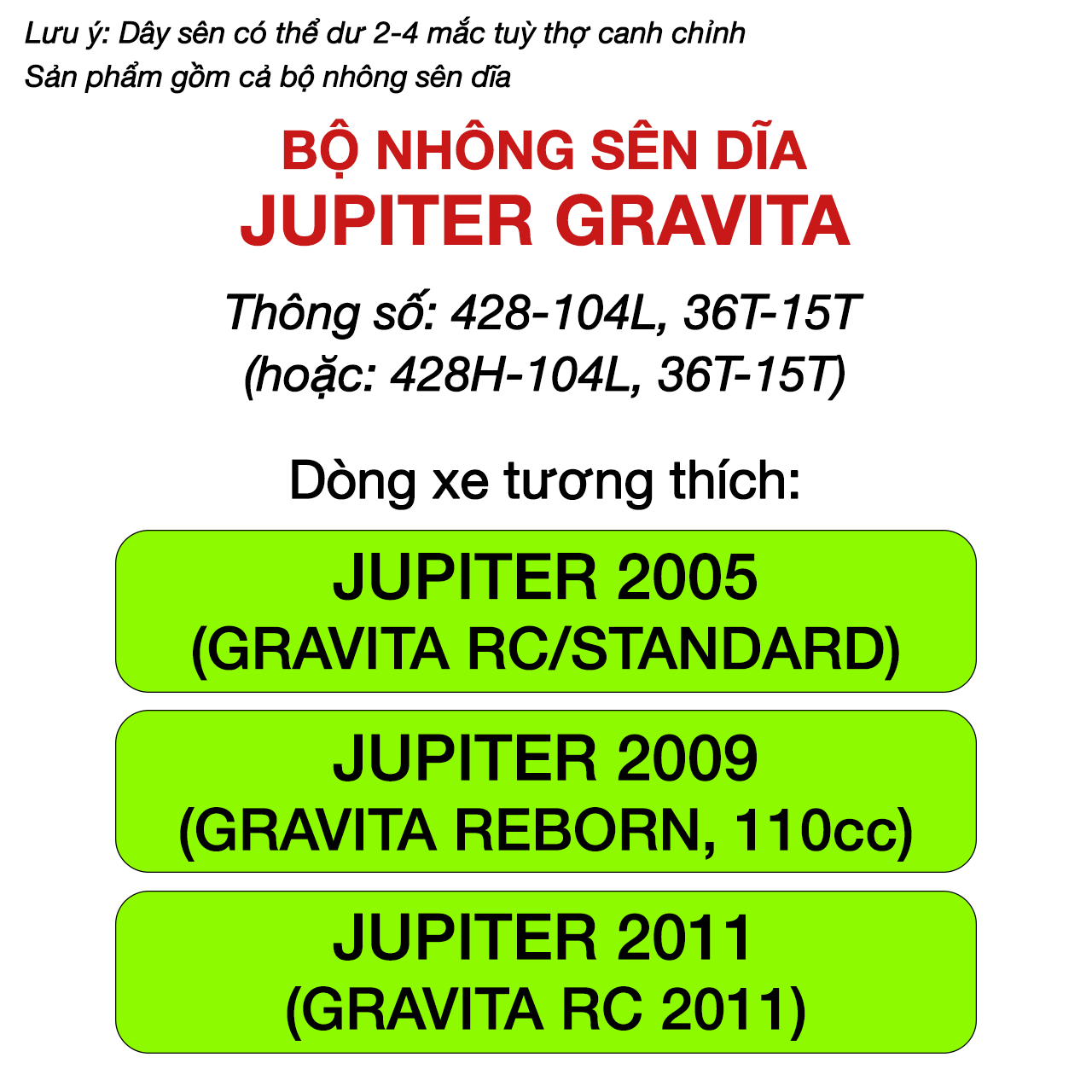 LƯU Ý: sên của xe JUPITER là 9 ly, tuy nhiên Bạn có thể thay đổi sên 10 ly để trải nghiệm: xe chạy đầm hơn, chịu lực mạnh hơn và êm hơn.