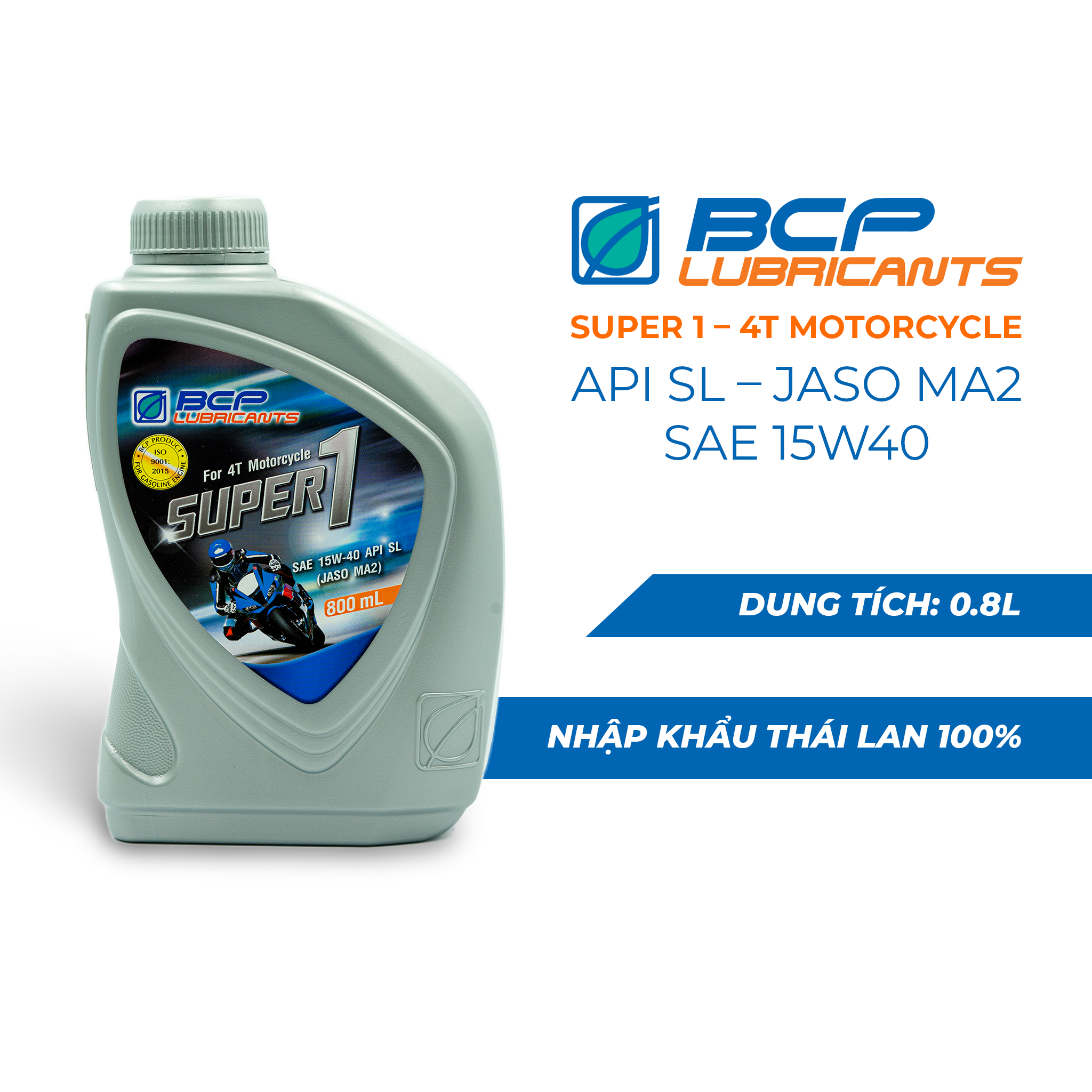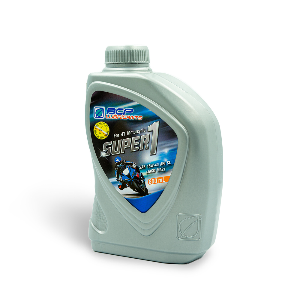 Nhớt xe số BCP Super 1 - SAE 15W40 - API SL - JASO MA2 – chai 800 mL BCP Super 1 4T Motorcycle là sản phẩm dầu nhớt đa cấp tổng hợp chuyên dùng