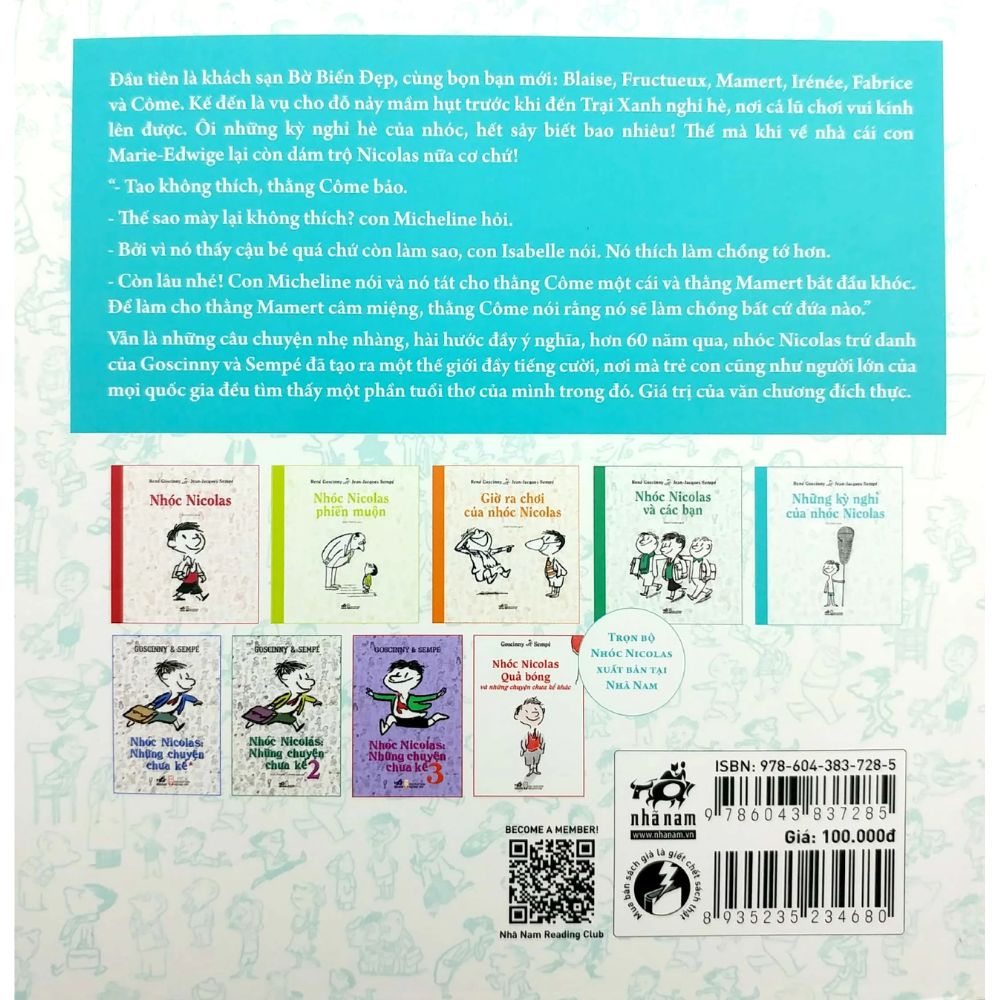 Đầu tiên là khách sạn Bờ Biển Đẹp, cùng bọn bạn mới: Blaise, Fructueux, Mamert, Irénée, Fabrice và Côme. Kế đến là vụ cho đỗ nảy mầm hụt trước khi đến Trại Xanh nghỉ hè, nơi cả lũ chơi vui kinh lên được. Ôi những kỳ nghỉ hè của nhóc, hết sảy biết bao nhiêu! Thế mà khi về nhà cái con Marie-Edwige lại còn dám trộ Nicolas nữa cơ chứ!