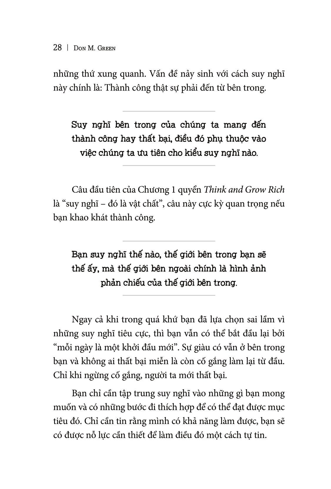 “Tất cả sự giàu có phụ thuộc vào việc hiểu rõ rằng trí óc chính là nguồn gốc tạo ra sự giàu có. Bạn phải kiểm soát suy nghĩ nếu muốn kiểm soát hoàn cảnh sống của m.ình.”