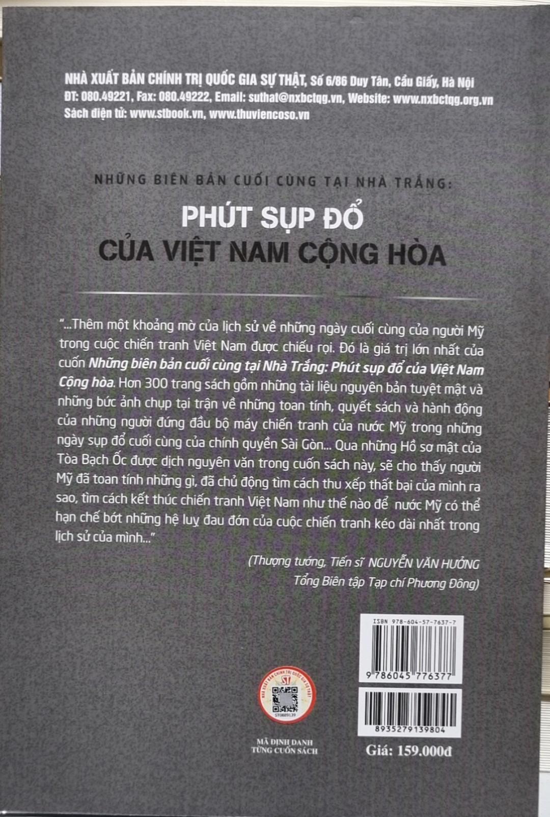 Qua cuốn sách, bạn đọc sẽ được biết tường tận về nội tình giới chức Mỹ trong những ngày tận cùng của cuộc chiến tranh. Với hình thức biên bản nên các bản văn được giải mật ghi đầy đủ, trung thực ý kiến phát biểu của từng nhân vật chủ chốt trong bộ máy chiến tranh của Hoa Kỳ về các vấn đề, sự việc nóng bỏng trong phút sinh tử được đặt ra trên bàn nghị sự các cuộc họp Hội đồng An ninh Quốc gia Hoa Kỳ.