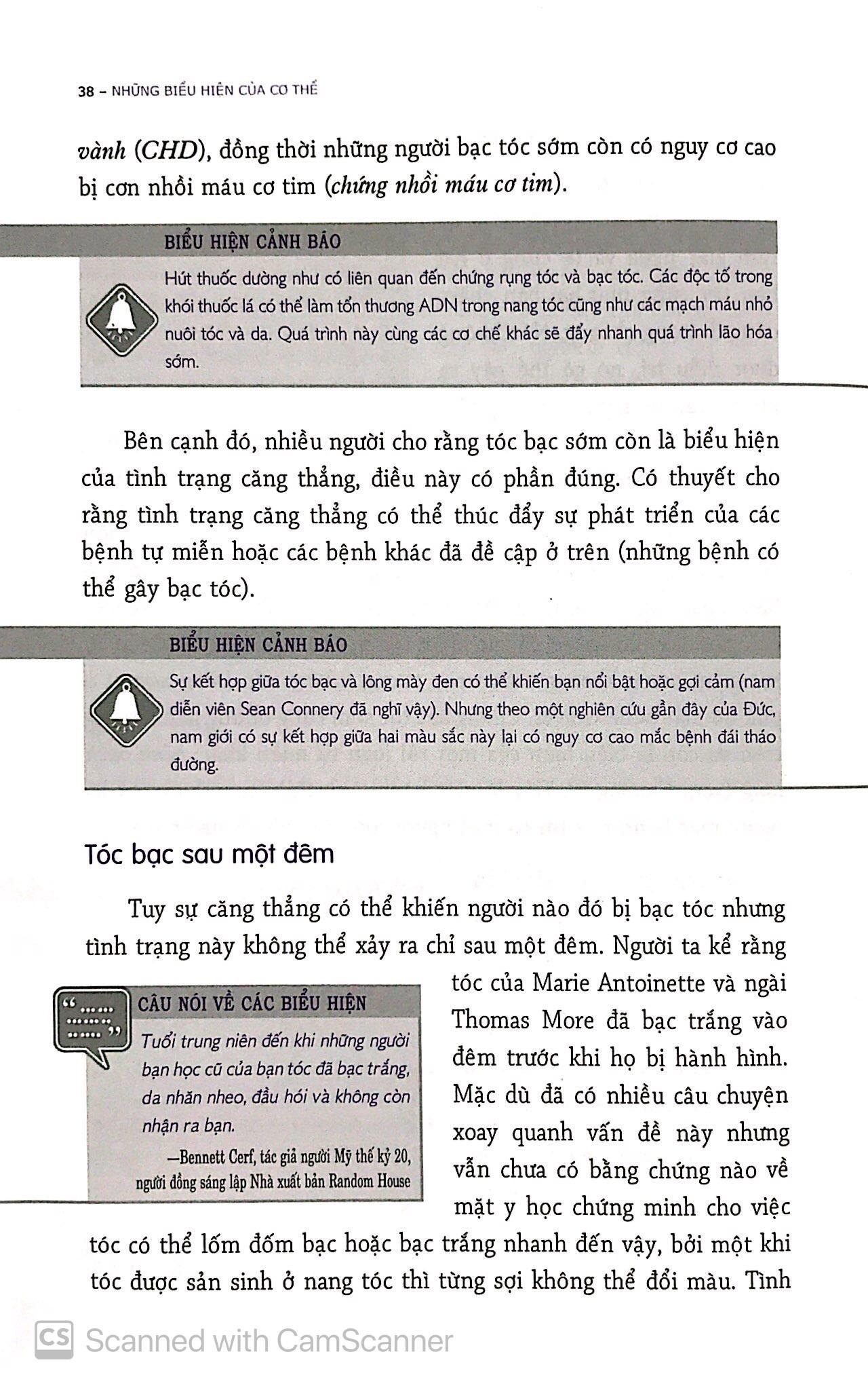 Trong khi các triệu chứng như đau nhức, sốt và chảy máu xuất hiện rõ rệt thì những biểu hiện của cơ thể thường diễn ra quá âm thầm và khó diễn giải đến mức chúng ta có thể bỏ qua. Thế nhưng tóc, mắt, răng, da, móng và các bộ phận khác lại thường bộc lộ những biểu hiện có thể cảnh báo các bệnh và rối loạn bên trong cơ thể.