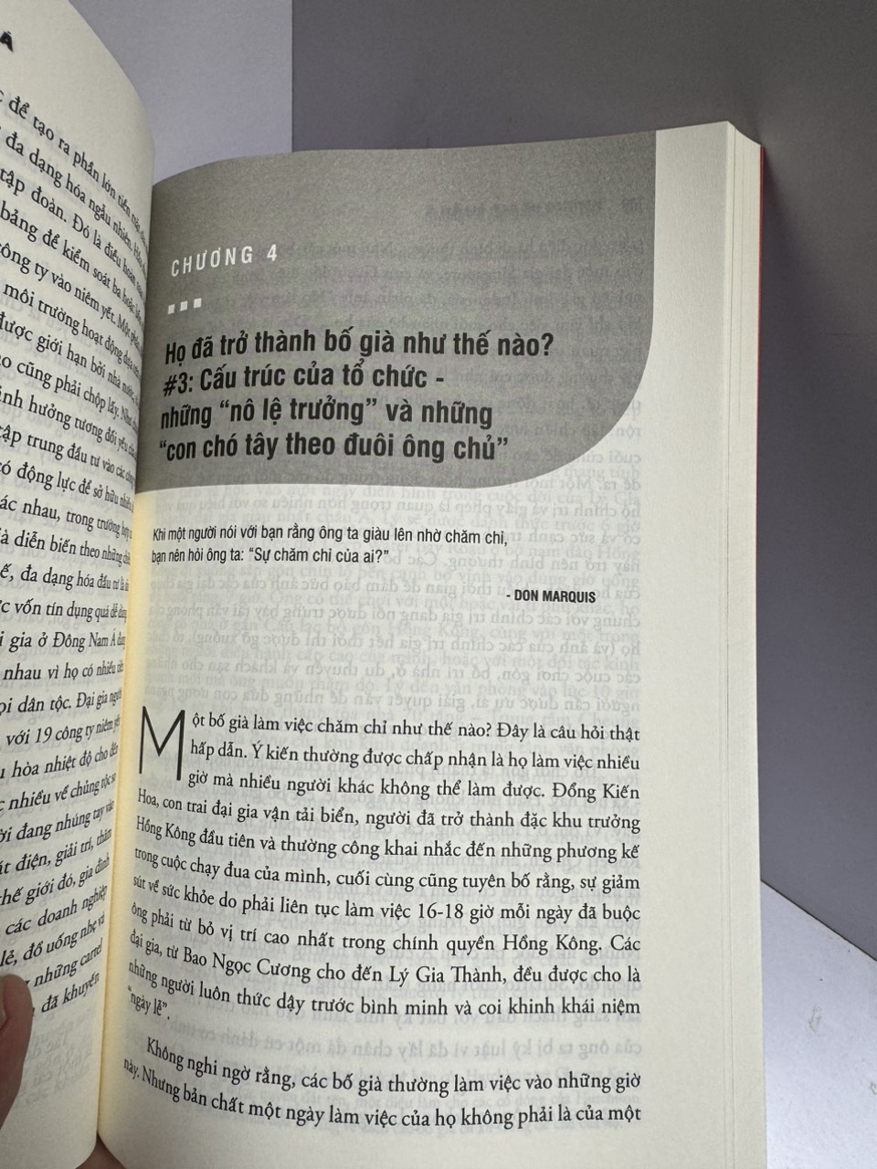 Trong số các “bố già” trên thế giới, rất ít nhóm có nhiều bí mật hơn “những bố già” châu Á. Đó là nhóm rất nhỏ những người cực kỳ giàu có kiểm soát vận mệnh kinh tế của Singapore, Malaysia, Thái Lan, Indonesia, Hồng Kông và Philippines. Bí ẩn, khôn ngoan, thậm chí tàn nhẫn, những ông trùm này đại diện cho 8 trên tổng số 25 người giàu nhất hành tinh những năm 1990, và họ tiếp tục điều khiển vận may cá nhân trị giá hàng tỉ đô la, tiếp tục kiểm soát mọi thứ từ ngân hàng và bất động sản vào trò chơi cờ bạc – nhưng tên họ lại không quen thuộc với độc giả thường xuyên của tờ Tạp chí Phố Wall.