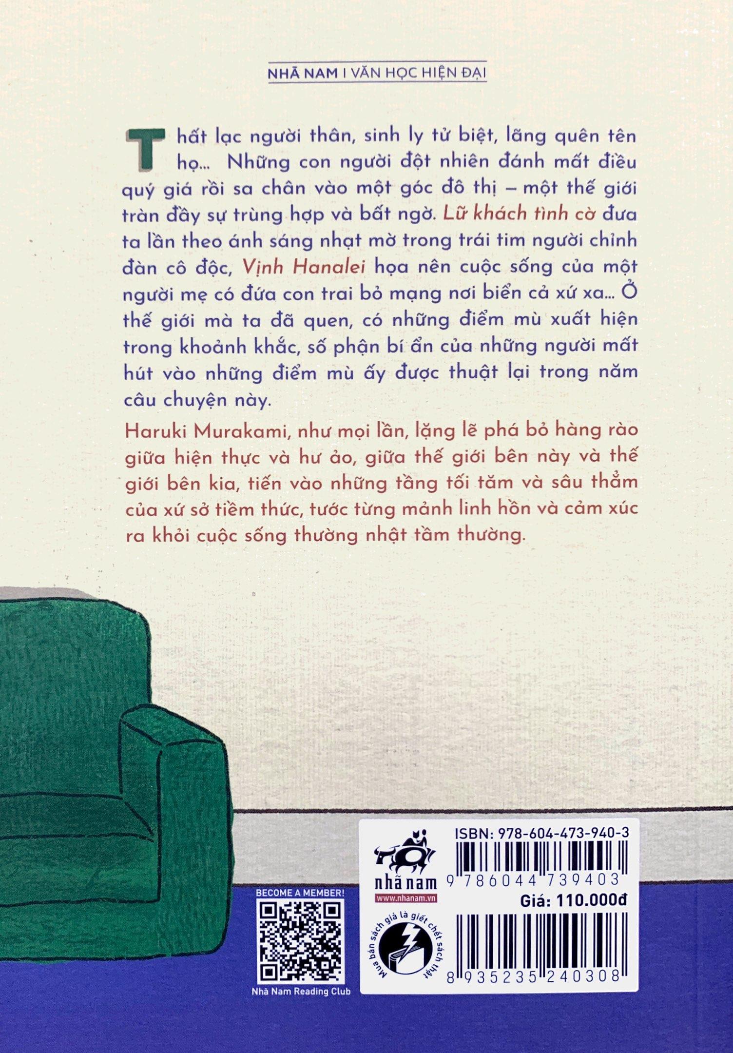 Thất lạc người thân, sinh ly tử biệt, lãng quên tên họ Những con người đột nhiên đánh mất điều quý giá rồi sa chân vào một góc đô thị - một thế giới tràn đầy sự trùng hợp và bất ngờ. Lữ khách tình cờ đưa ta lần theo ánh sáng nhạt mờ trong trái tim người chỉnh đàn cô độc, Vịnh Hanalei họa nên cuộc sống của một người mẹ có đứa con trai bỏ mạng nơi biển cả xứ Ở thế giới mà ta đã quen, có những điểm mù xuất hiện trong khoảnh khắc, số phận bí ẩn của những người mất hút vào những điểm mù ấy được thuật lại trong năm câu chuyện này.