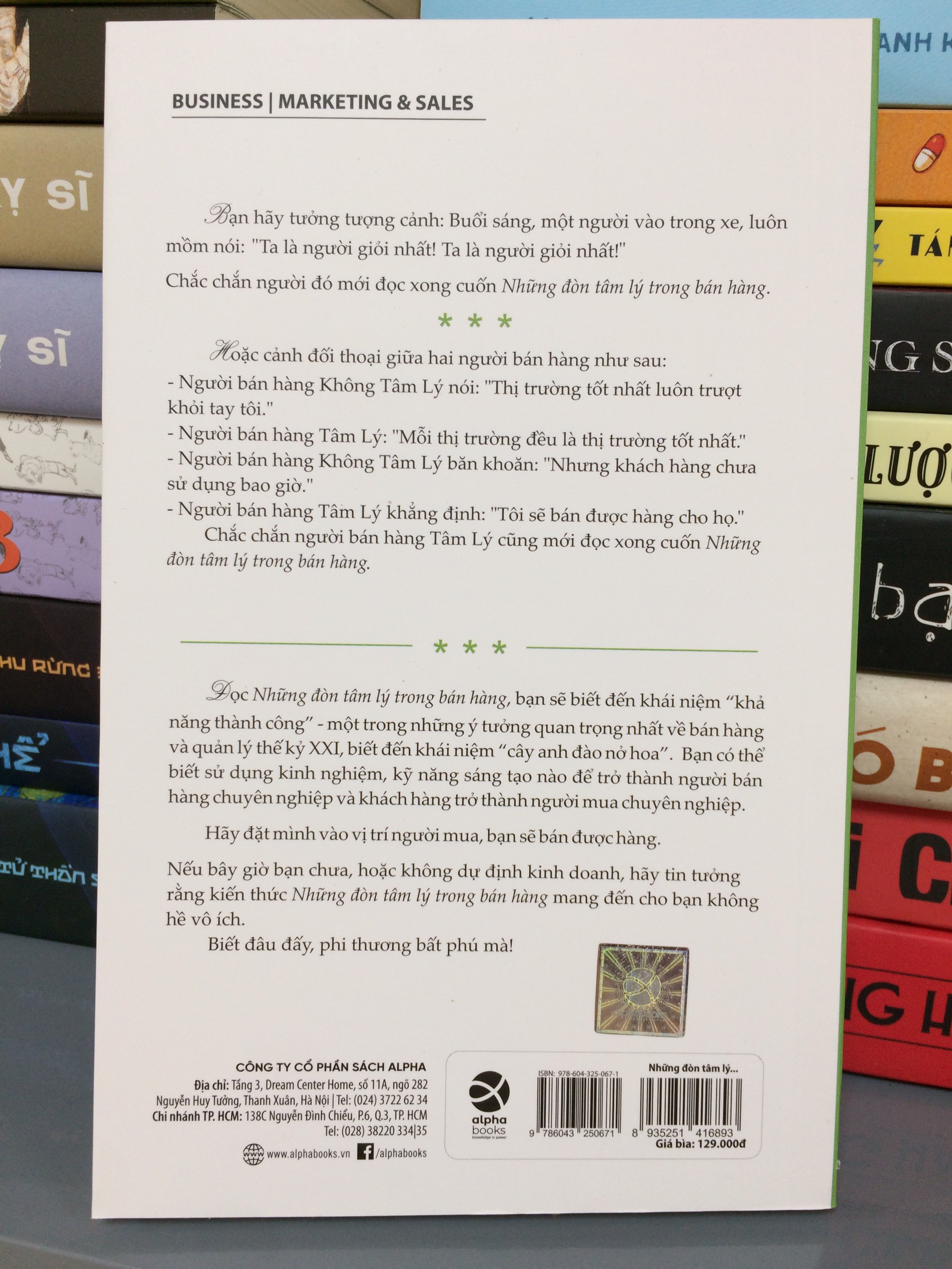 Đọc Những đòn tâm lý trong bán hàng, bạn sẽ biết đến khái niệm "khả năng thành công" - một trong những ý tưởng quan trọng nhất về bán hàng và quản lý thế kỷ 21, biết đến khái niệm "cây anh đào nở hoa", hoặc bạn cần sử dụng kinh nghiệm, kỹ năng sáng tạo nào để bạn trở thành người bán hàng chuyên nghiệp và khách hàng cũng thành người mua chuyên nghiệp.