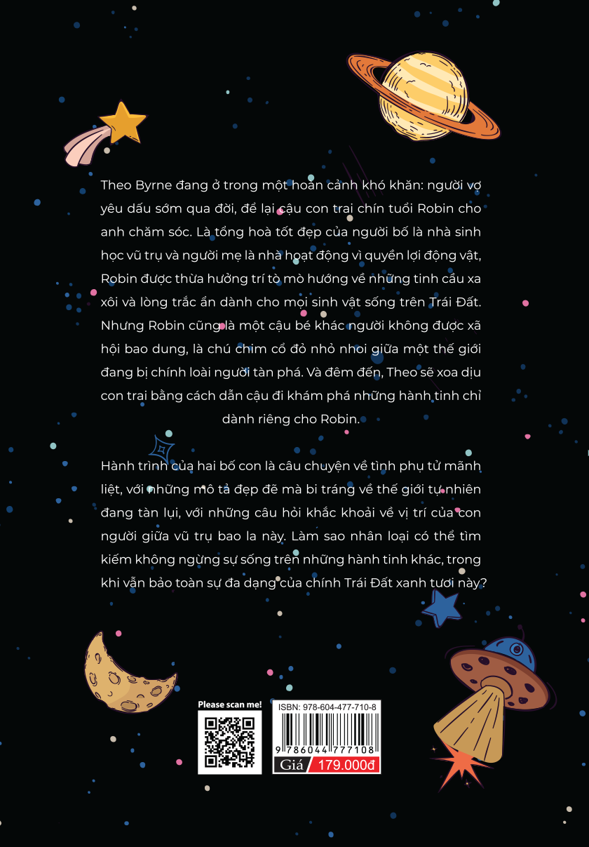 Theo Byrne đang ở trong một hoàn cảnh vô cùng khó khăn: người vợ dấu yêu sớm qua đời để lại cậu con trai 9 tuổi Robin cho anh chăm sóc. Là tổng hòa mọi điều tốt đẹp của người bố - một nhà sinh vật học vũ trụ và người mẹ - một nhà hoạt động vì quyền lợi động vật. Robin được thừa hưởng trí tò mò hướng về những tinh cầu xa xôi và lòng trắc ẩn dành cho mọi sinh vật sống trên Trái Đất. Nhưng Robin cũng là một cậu bé khác thường không được xã hội bao dung, là chú chim cổ đỏ nhỏ nhoi, lạc lõng giữa một thế giới đang bị con người tàn phá. Và đêm đến, Theo sẽ xoa dịu con trai bằng cách dẫn cậu đi khám phá những hành tinh chỉ dành riêng cho Robin.