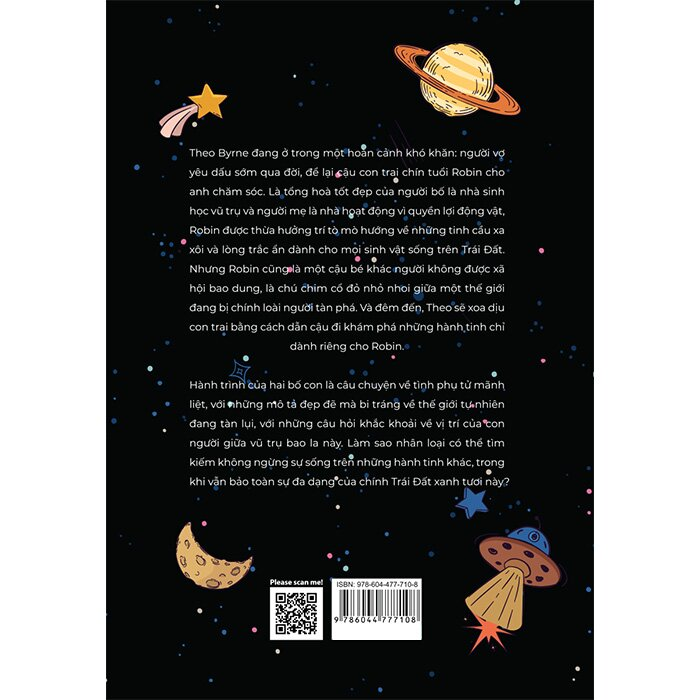 Nhưng Robin cũng là một cậu bé khác thường không được xã hội bao dung, là chú chim cổ đỏ nhỏ nhoi, lạc lõng giữa một thế giới đang bị con người tàn phá. Và đêm đến, Theo sẽ xoa dịu con trai bằng cách dẫn cậu đi khám phá những hành tinh chỉ dành riêng cho Robin. Hành trình của hai bố con là câu chuyện về tình phụ tử mãnh liệt, với những mô tả đẹp đẽ mà bi tráng về thế giới tự nhiên đang dần lụi tàn, với những câu hỏi khắc khoải về vị trí, sự tồn tại của con người giữa vũ trụ bao la, vô tận này. Đặt ra câu hỏi làm sao nhân loại có thể không ngừng tìm kiếm sự sống trên những hành tinh khác, trong khi vẫn phải bảo toàn sự đa dạng của chính Trái Đất xanh tươi này?