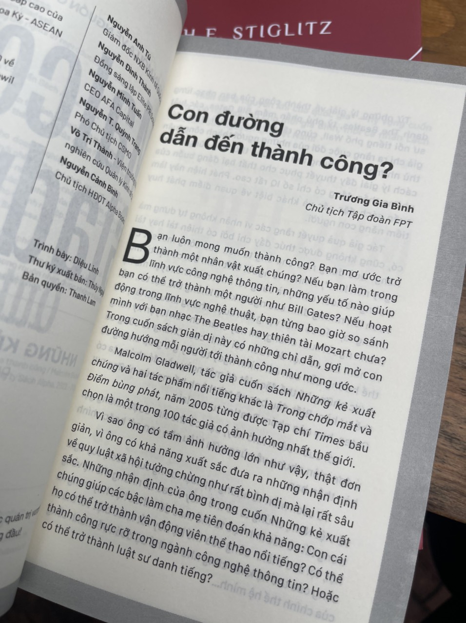 Với giọng văn lôi cuốn và cách kể chuyện hết sức có duyên, Malcolm Gladwell cũng viện dẫn rất nhiều giai thoại thú vị như tại sao phần lớn các cậu bé giỏi môn kh,ú,c c.ô,n cầu lại sinh vào tháng một, tại sao con cái của những người Do Thái nhập cư lại trở thành những luật sư quyền lực nhất New York, tại sao truyền thống văn hóa của nền nông nghiệp lúa nước lại có thể giúp trẻ em châu Á giỏi toá Nhưng không chỉ có thế. Thông qua những ví dụ này, Gladwell muốn bàn luận về những con đường phức tạp dẫn đến thành công của con người.