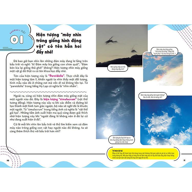 Mua tại TiktokMỗi khi ngước nhìn bầu trời, hẳn mỗi người trong chúng ta đều một lần nghĩ rằng: “Mình muốn leo lên những đám mây khổng lồ quá!”, hoặc “Không biết điểm cuối của cầu vồng ở đâu nhỉ?”. Bầu trời quá đỗi thân thuộc khi ngày ngày chúng ta vẫn ngắm nhìn nó và lắng nghe dự báo thời tiết trên tivi, thế nhưng vẫn còn rất nhiều điều về bầu trời mà chúng ta chẳng hay biết đến. Với cách diễn giải đơn giản, dễ hiểu cùng hình minh họa trực quan, sinh động, bộ sách Những Kì Quan Thời Tiết – Từ Điển Bỏ Túi Về Các Hiện Tượng Thiên Nhiên Kì Thú sẽ giải đáp nhiều thắc mắc của độc giả về bầu trời, các đám mây, các hiện tượng thời tiết vừa quen thuộc, vừa lạ kì. Bộ sách sẽ kéo gần khoảng cách giữa chúng ta với bầu trời và những đám mây, khiến bạn phải sửng sốt thốt lên: “A! Nguyên do của hiện tượng đó là thế!”