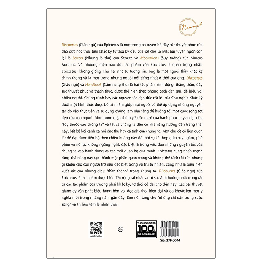 Discourses (Những bài thuyết giảng) của EPICTETUS tạo thành một trong ba tuyên bố đầy sức thuyết phục của đạo đức học thực tiễn Khắc kỷ từ thời kỳ đầu của Đế chế La Mã; hai tuyên ngôn còn lại là Những lá thư của Seneca và Meditations (Suy tưởng) của Marcus Aurelius. Về phương diện nào đó, tác phẩm của Epictetus là quan trọng nhất. Epictetus, không giống như hai nhà tư tưởng kia, ông là một giáo viên Khắc kỷ chính thống và là một trong những người nổi tiếng nhất ở thời của ông.