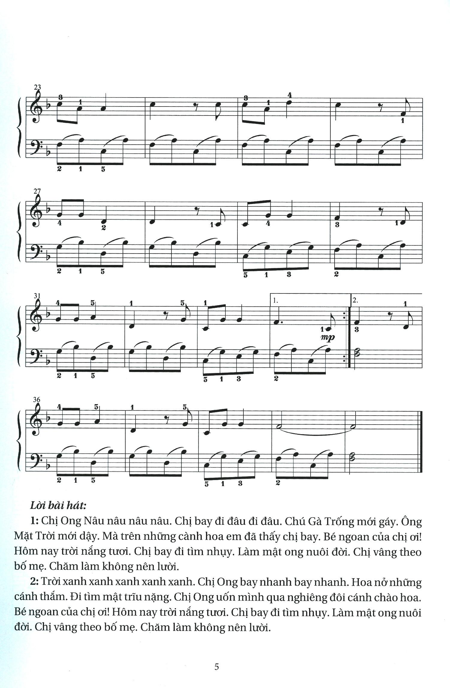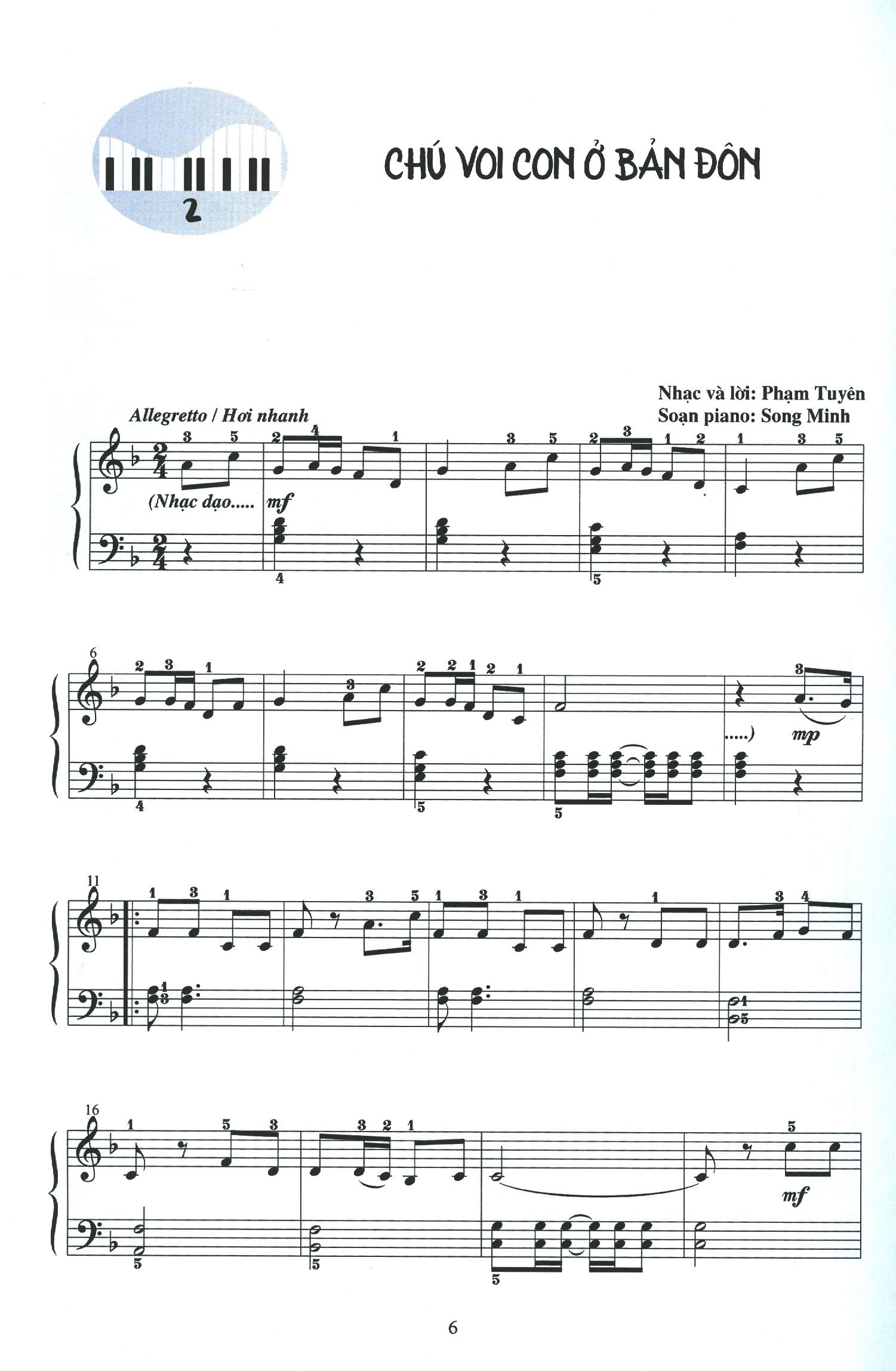 Bộ sách (2 phần) gồm những bài tập dành cho những lứa tuổi mầm non, tiểu học nói riêng và những người học mới piano nói chung. Các bài hát trong sách chủ yếu dựa